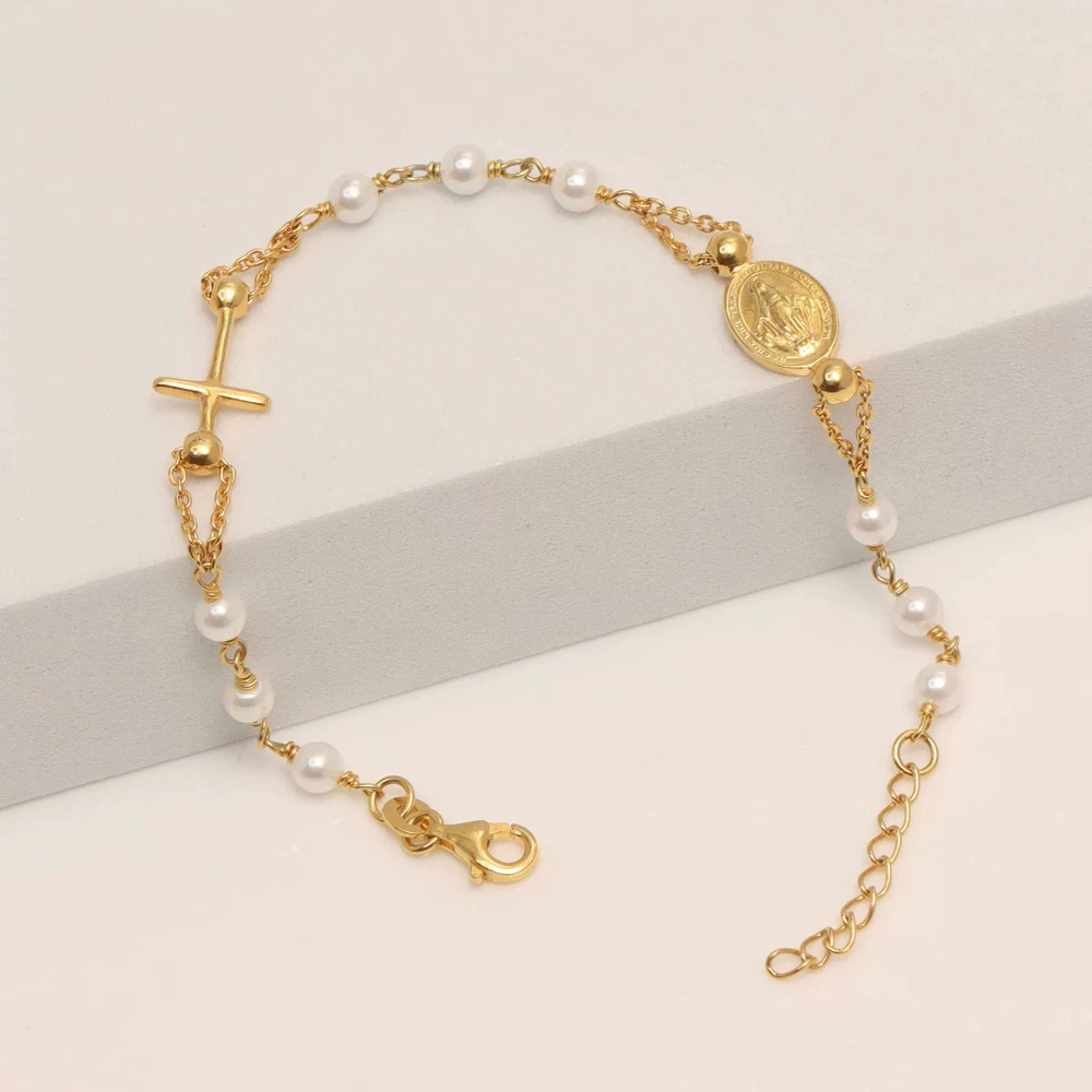 Stylish and Inspirational - Show your spiritual side with this gold rosary bracelet imitation pearl station beads, a Miraculous Medal of the Virgin Mary and a polished cross. A modern twist on the classic rosary, this minimalist chain can be worn as a symbol of one’s faith or as cool fashion statement. This dainty, everyday glam chain is beautiful with both casual and dressy outfits. Wear stacked with other chains for a hip and trendy look. Gift for Her - Chic and timeless gift for the woman who appreciates quality and fine craftsmanship. A unique bracelet the makes a simple statement with personal style, show someone you care with this sentimental gift of faith. It’s the perfect present for mom, daughter, wife, sister, aunt, niece, best friend, girlfriend, for you. Gift Box Included - FJ jewelry is shipped in an elegant gift box, ready to treat yourself or a loved one for any anniversary, birthday, wedding, graduation, Christmas, Mother’s Day, Valentine’s Day and any other holiday or special occasion gifting. From cool modern to classic vintage, FJ offers high quality affordable sterling silver jewelry for women and men, comfortable for everyday wear and for all occasions.