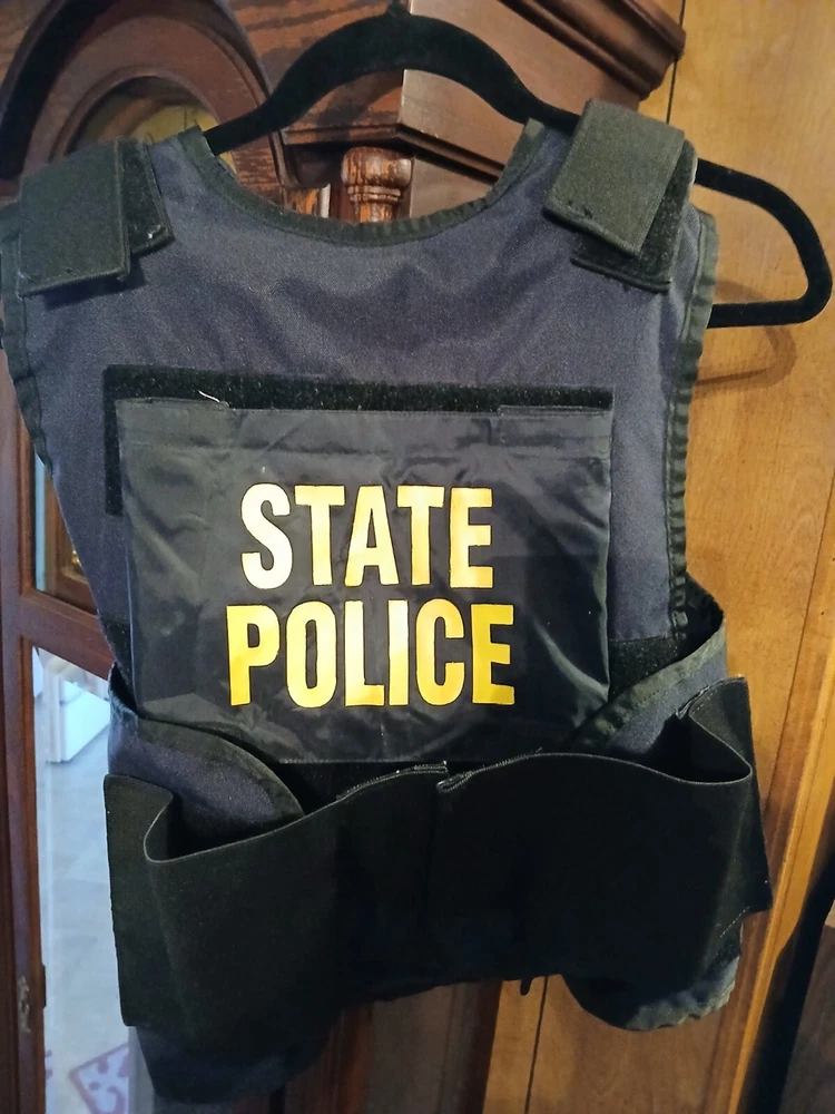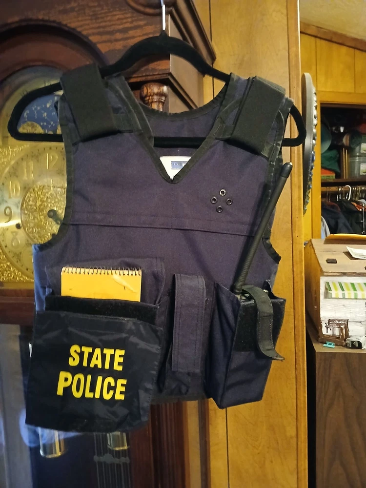 Old vsp Tactical vest. comes with 2 stick peel velcro state police panels. Radio and Note pad not included Ships with tracking and insurance. Ships out same or next day payments made. Thanks!