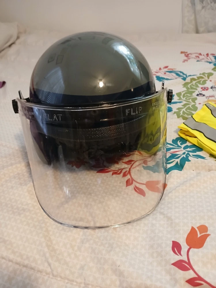 Virginia state Police Helmet. Has face shield and a back piece that comes off. The date on it says SEPT. 188 Im guessing that September 1988 but not a 100% sure. I will let you do the detective work. The inside foam needs replaced. Im sure some motorcycle shop can get it for you. Keep in mind that this is used and has scratches since it was used in the line of duty. Medium. by Premier Crown Corp Raleigh NC 27622 The Grey and Blue helmet would be great addition to your VSP collection! I enjoying collecting VSP license plates by the way :) Will be carefully boxed up and shipped withing 24 hours of receiving your payment! Thanks for looking and have a great day.