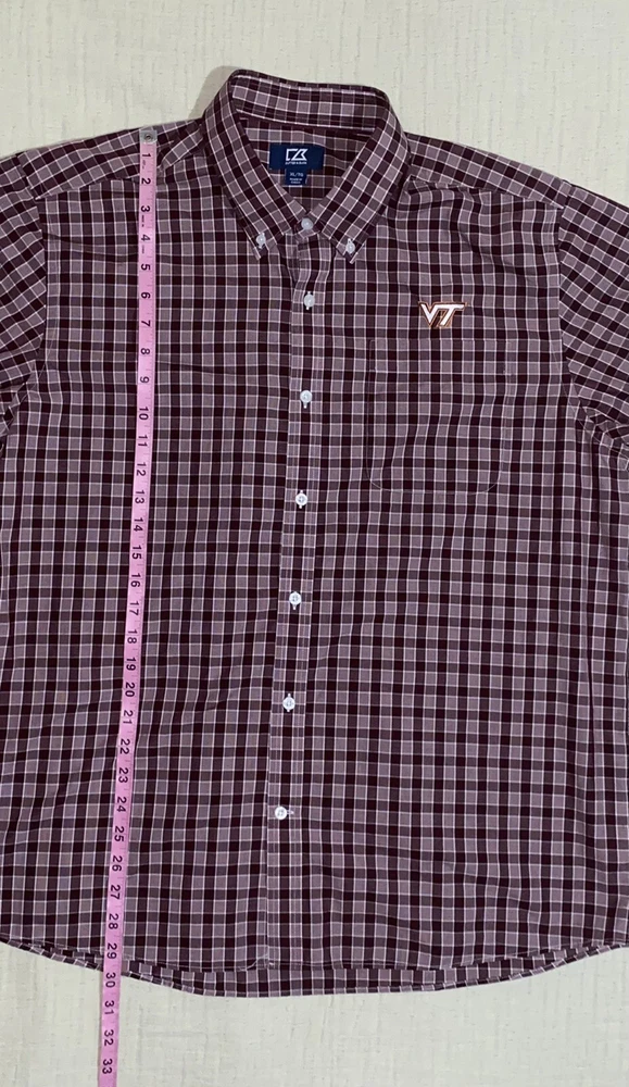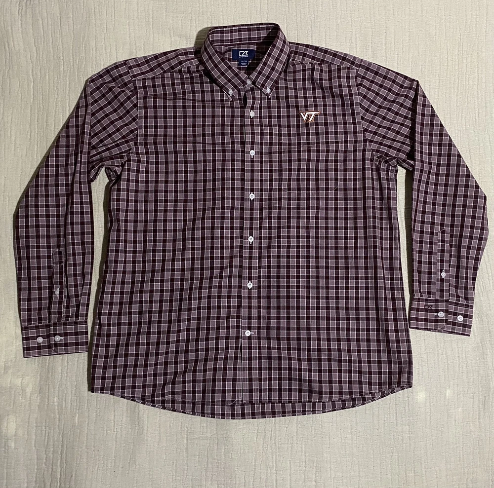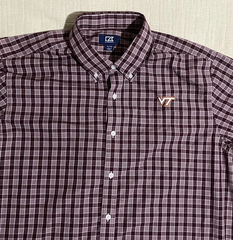 Virginia Tech Hokies Shirt Mens XL Cutter Buck Button Down Collar Plaid Logo