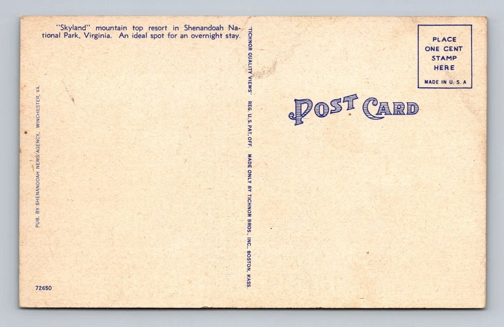 Virginia VA Shenandoah National Park Skyland Resort Vintage Postcard Old View PC