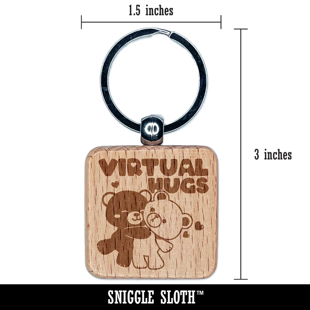 Virtual Bear Hugs Engraved Wood Square Keychain Tag Charm