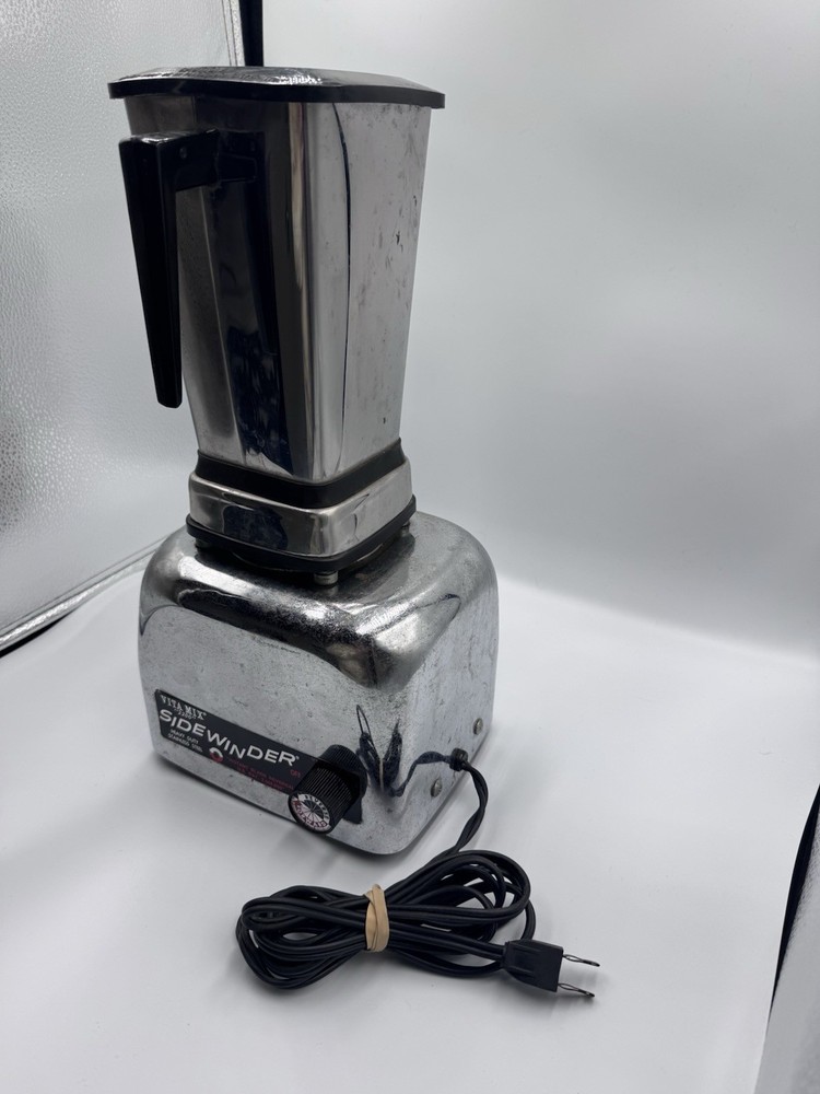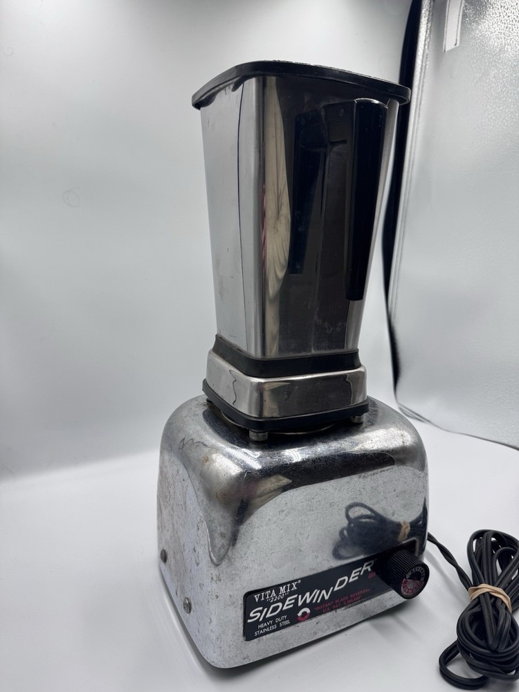 The Vita Mix 2200 Sidewinder Blender is a vintage commercial blender with a heavy-duty design capable of blending frozen drinks. This electric blender operates at 115V and comes in a classic stainless steel color. With the brand's reputation for quality, this Vitamix model is sure to deliver powerful and reliable performance for all your blending needs.