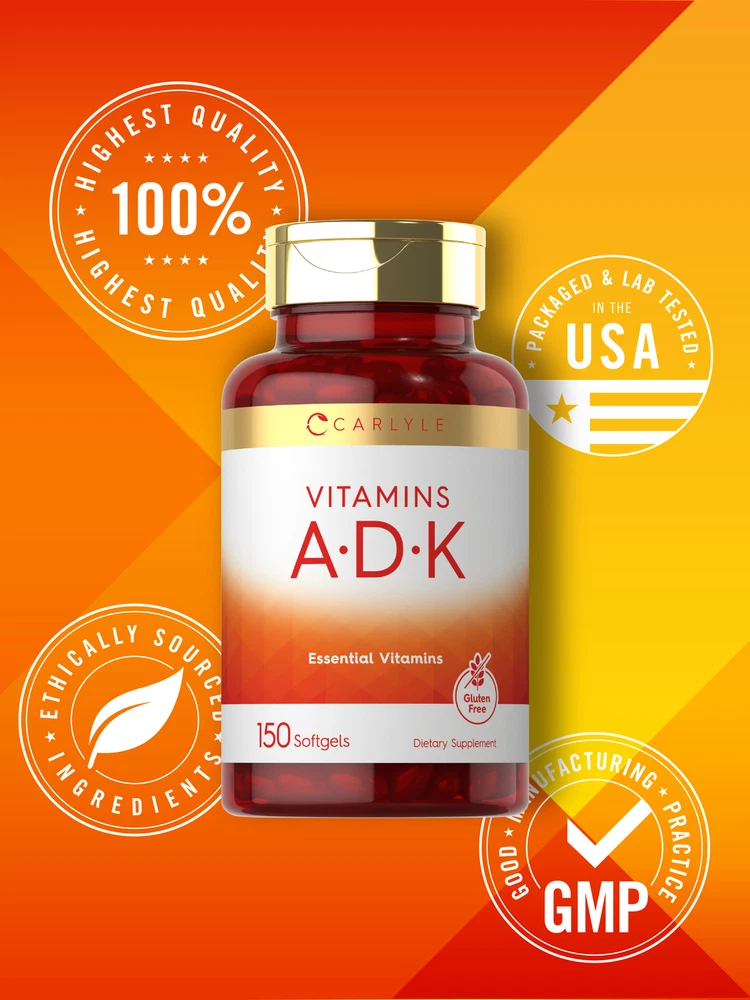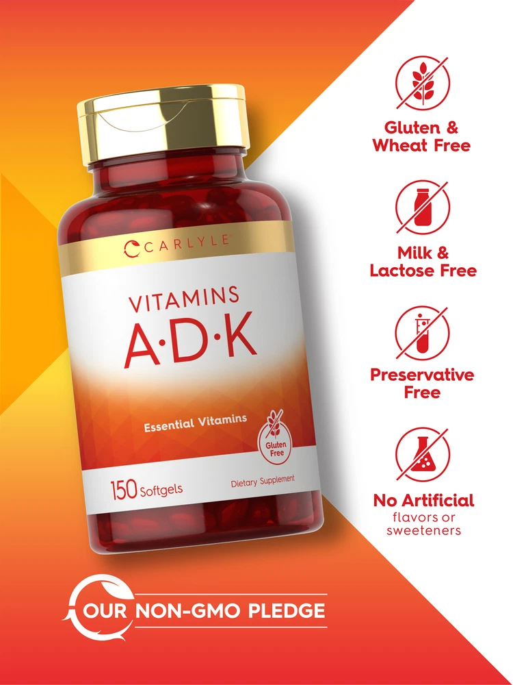 Vitamin ADK | 150 Softgels | Non-GMO, Gluten Free Supplement | By Carlyle