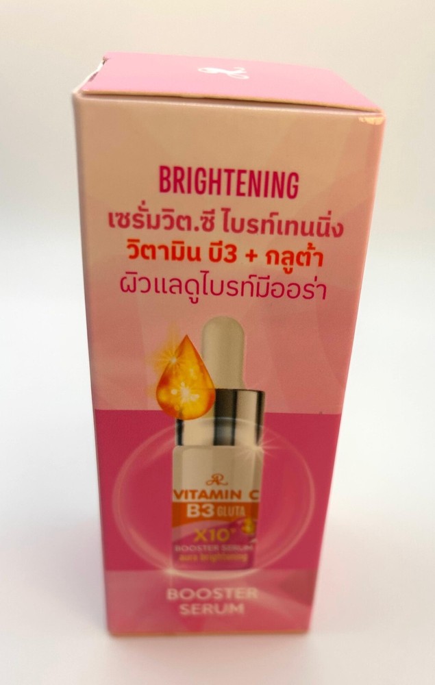 Vitamin C B3 Glutathione Brightening Booster Serum – Radiance in Every Drop! Product Overview: Transform your skincare routine with our Vitamin C B3 Glutathione Brightening Booster Serum , a powerful blend of brightening and rejuvenating ingredients. Formulated with niacinamide, snail secretion, arbutin, and vitamin C, this serum helps reduce dark spots, even out skin tone, and promote a youthful, glowing complexion. Key Ingredients & Benefits: Vitamin C: A potent antioxidant that brightens skin, reduces hyperpigmentation, and promotes collagen production. Niacinamide (Vitamin B3): Helps improve skin texture, reduce redness, and minimize pores for a smoother appearance. Glutathione: Known for its brightening properties, it helps reduce discoloration and supports a radiant, even skin tone. Snail Secretion: Deeply hydrates and repairs skin while promoting elasticity and reducing fine lines. Arbutin: Targets dark spots and pigmentation, leaving skin visibly brighter and more even. Why You’ll Love It: Lightweight, fast-absorbing formula Hydrates, brightens, and evens out skin tone Reduces the appearance of dark spots and blemishes Suitable for all skin types, including sensitive skin How to Use: Cleanse and pat skin dry. Apply 2-3 drops of serum to your face and neck. Gently massage in circular motions until absorbed. Follow with your favorite moisturizer. Use morning and night for best results. Size: [10ml or 0.34 fl oz] Elevate Your Skincare Game! The Vitamin C B3 Glutathione Brightening Booster Serum is your go-to solution for glowing, healthy-looking skin. Perfect for tackling dark spots, dullness, and uneven tone, this serum will leave your skin brighter, smoother, and more radiant.