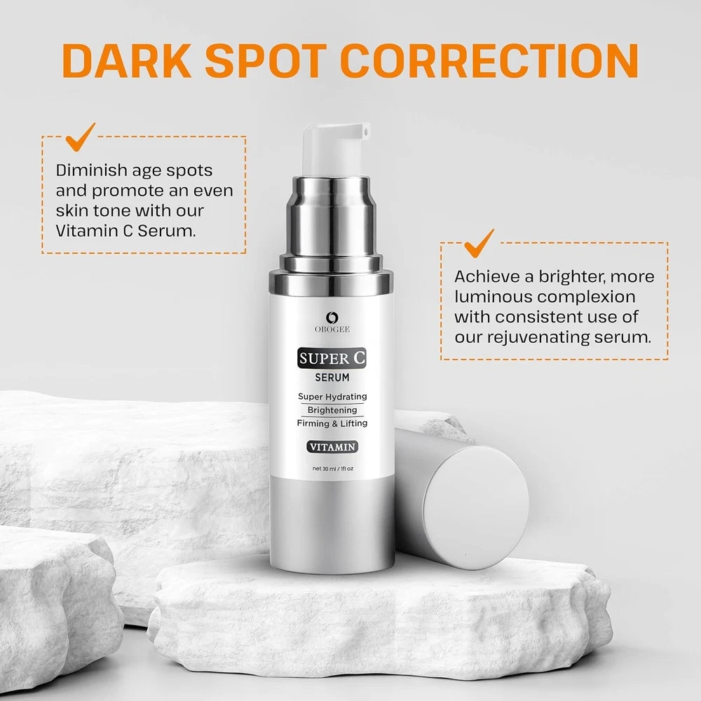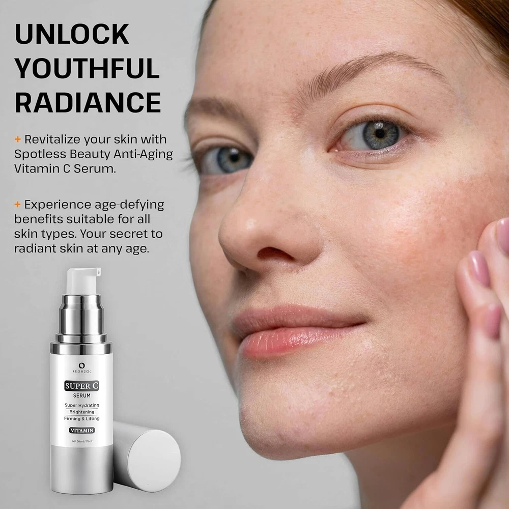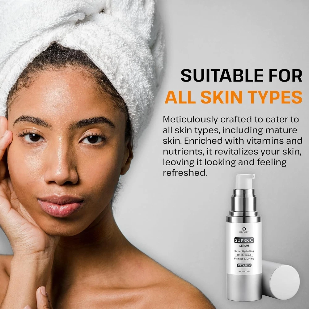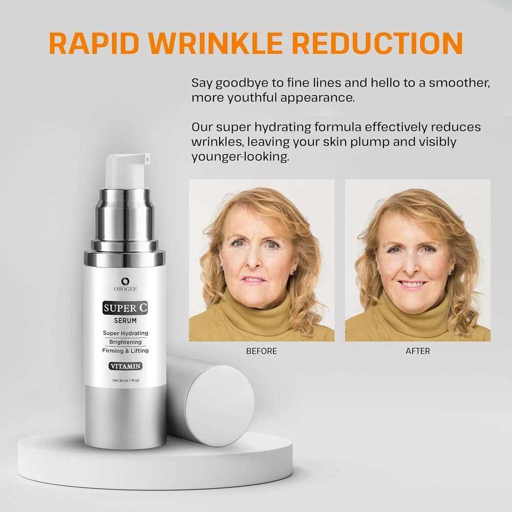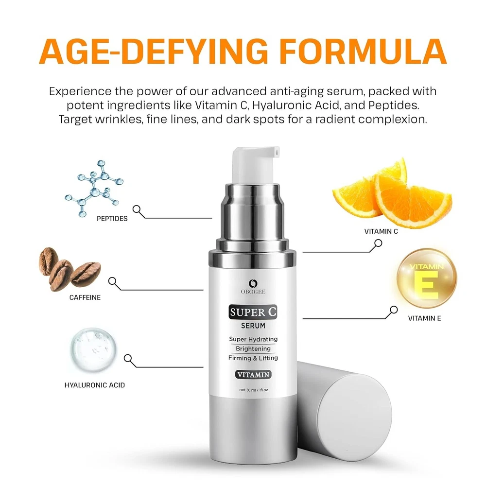 🌟 Age-Defying Vitamin C Face Serum for Mature Skin - Target Wrinkles, Dark Spots & Uneven Skin Tone! 🌟 Advanced Anti-Aging Formula: Specifically crafted for mature skin, our powerful serum blends Vitamin C, Hyaluronic Acid, Niacinamide, Vitamin E, Caffeine, and Peptides to visibly reduce wrinkles, fine lines, and dark spots, leaving your skin glowing and youthful. Visible Wrinkle Reduction: Say goodbye to fine lines! Our deeply hydrating serum works to plump up your skin, smooth out wrinkles, and restore a more youthful, radiant appearance. Dark Spot Correction: This Super Vitamin C Serum acts as a dark spot corrector, fading age spots and promoting an even skin tone. Enjoy a brighter, more luminous complexion with regular use. Achieve Even Skin Tone: Our serum's potent ingredients target uneven skin tone, helping you reveal a balanced and flawless complexion. Restore your skin's natural vibrancy and radiance with every application. Intense Hydration & Nourishment: Packed with moisture-boosting ingredients, our serum deeply hydrates and nourishes, leaving your face soft, supple, and revitalized – perfect for mature skin. Easy to Use, Non-Greasy Formula: Simply apply twice a day, morning and night, for fast absorption and a non-greasy finish. Effortlessly incorporate it into your daily skincare routine for noticeable, long-lasting results. ✨ Transform your skin with this rejuvenating serum and uncover a youthful, glowing complexion today! ✨