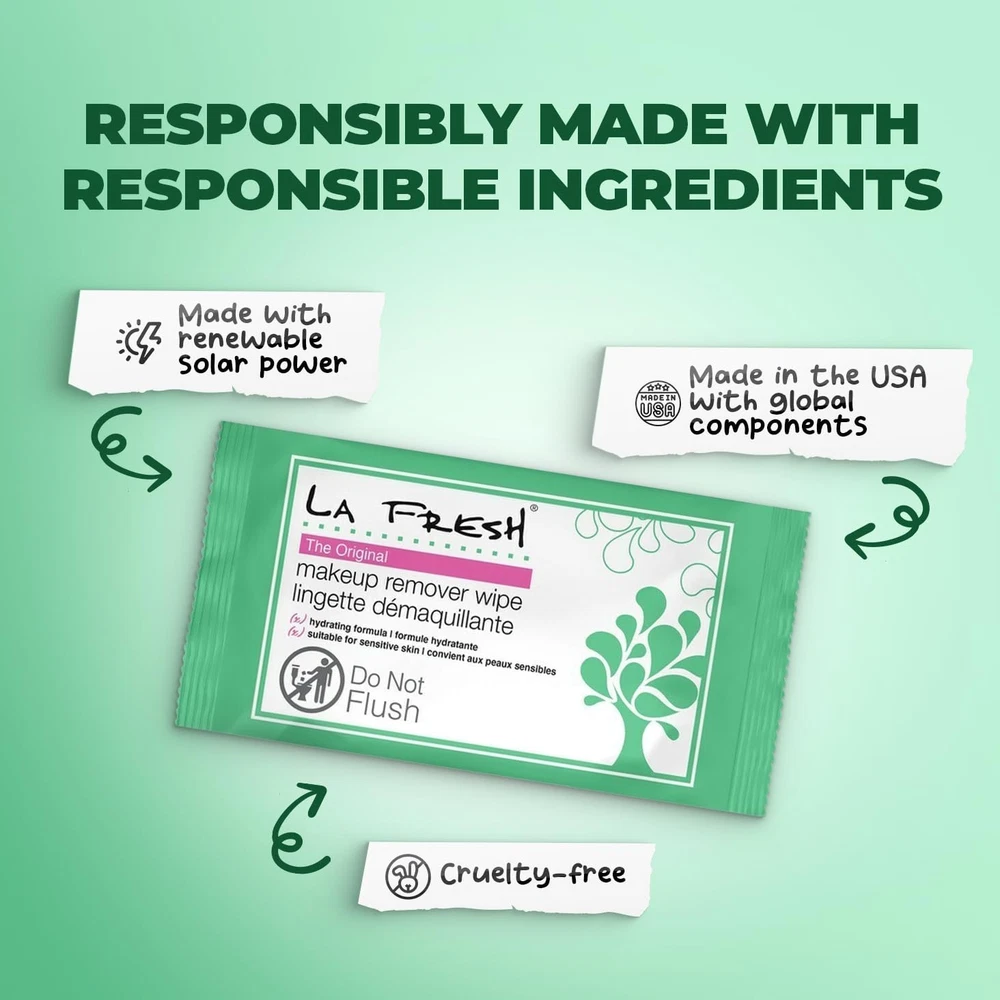 DISSOLVES STUBBORN MAKE-UP - Gently and effectively remove make up with makeup remover wipes. Our non-comedogenic face wipes can remove even the heaviest, waterproof makeup and still leave your skin hydrated and moisturized. GOOD FOR YOUR SKIN - Our face cleansing wipes contain skin-repairing vitamin E to keep your face, around the eyes, and the lips conditioned after removing makeup. Our makeup wipes have a silky lite-touch formula that is never greasy and safe for sensitive skin. SINGLE-USE MAKE UP WIPES - These TSA-friendly travel size, facial wipes are individually sealed so they are easy to carry, use, and avoid spills and leaks. The perfect size to put in purses, backpacks, and more. Pack for everyday skin care and travel essentials. SAFE FOR SENSITIVE SKIN - A highly refined make up remover wipes for face made with purified mineral oil that does not clog the pores, and won’t dry your skin. makeup remover wipes are made with responsible ingredients and are never tested on animals. - An environmentally conscious brand creating an impact on people’s lives with its products’ benefits, convenience, and conscientiousness. The goal is to make the world a little better, a bit brighter, and more beautiful for everyone through chic, environmentally responsible, travel-friendly skincare and wipes.