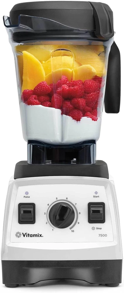 Store New Arrivals Add to Favorite View Feedback Contact Vitamix 7500 Blender, Professional-Grade, 64 Oz. Low-Profile Container, White Description Item model number 56244 Style Blender Capacity 64 Fluid Ounces Power Source ac Country of Origin USA Warranty Type 7-year full warranty covers parts, labor and return shipping both ways. Controls Type Knob or Push Button Brand Vitamix Item Weight 125 Pounds Is Dishwasher Safe No Is Discontinued By Manufacturer No Blade Material Stainless Steel Number of Speeds 10 Included Components Motor Base, Low-Profile 64-ounce Container, Tamper, Getting Started Guide, Cookbook, Material BPA-free Eastman Tritan® copolyester Wattage 1440 watts Item Weight 12.5 pounds Special Feature Blends Manufacturer Vitamix Color White Global Trade Identification Number 00703113564048, 00703113562440 Voltage 120 Volts Recommended Uses For Product Blending Material Type Free BPA Free Product Dimensions 8.5"D x 8.5"W x 17.25"H Variable Speed Control: Ten variable speeds allow you to refine every texture with culinary precision, from the smoothest purées to the heartiest soups Pulse Feature: Layer coarse chops over smooth purées for heartier recipes, such as chunky salsas or thick vegetable soups.Electrical Ratings- 120 V, 50/60 Hz, 12 Amps Low-Profile 64-ounce Container: Perfect for family meals and entertaining, while fitting comfortably under most kitchen cabinets. Cord: 6 feet Hardened Stainless-Steel Blades: Our aircraft-grade stainless steel blades are designed to handle the toughest ingredients, so from the first blend to the last, you get the same quality results. Radial cooling fan and thermal protection system Self-Cleaning: With a drop of dish soap and warm water, your Vitamix machine can clean itself in 30 to 60 seconds. Vitamix fuels passions. It’s why we’re the brand most trusted by professional chefs. But you won’t just find us in restaurant kitchens. You’ll also find us in home kitchens around the world. Because whether you’re interested in the culinary arts, making healthier choices, or enjoying restaurant-quality smoothies at home—when you’re ready to move on and move up, when you’re ready to invest in your passion, you’re ready for Vitamix. Built to Last A bargain blender's not a bargain if it doesn't last. We know purchasing a Vitamix blender is an investment. But Vitamix blenders are built to last, helping you buy dependable, not disposable. Easy to Clean Just blend warm water and a drop of dish soap at your machine's highest speed, and watch it self-clean in 60 seconds or less - no disassembly required. The Difference Is in the Blend Since the number-one reason people purchase a blender is to make smoothies, it’s important to get them right. Whether you prefer an icy blend or a perfectly smooth purée, nutrition-packed with veggies or a light, fruity treat, Vitamix smoothies give you a delicious, even blend in every sip. Power We don’t aim to have the highest horsepower. You don’t need more horses; you need trained ones. The focused power of our complete blending system causes every component of the Vitamix machine to work together, creating faster, smoother blends packed with flavor. The Universal Tool Make smoothies & juices, hot soups, flours & dough, nut butter, frozen desserts, batters, dressings & sauces, non-dairy milks, and more. Manufactured in Cleveland, Ohio USA ABOUT US We offer the best prices around on high quality products. Our E-store includes media such as books, movies, music and games while offering electronics, toys, sporting apparel, clothing, tools, general home, garden items and more. SHIPPING We are always working hard to ensure your package arrives as soon as possible. Please understand that some factors like weather, high postal traffic, and the performance of shipping companies are outside of our control. For shipping outside of the continental USA, we only use eBay's Global Shipping Program.The item is shipped to KY and then sent to the rest of the world. International customers are responsible for all duties and taxes. Continue to check out in order to calculate costs for shipping the item to your country. Messages regarding eBay's Global Shipping Program MUST be directed at eBay EXCLUSIVELY. RETURNS We offer a 30-Day Return Policy on items which you are not completely satisfied with. You have the option for a full-refund or an exchange of the item. No returns are available on items shipped outside of the USA. PAYMENT We accept PayPal. CONTACT US This page content is yet to come Please ad us to your favorite seller and visit again later Thank You CUSTOMER SATISFACTION We try our very best to make sure every customer is completely satisfied. If there's a problem, message us! We're happy to help. WE ACCEPT Copyright © 2021 AutoDS. | All Rights Reserved