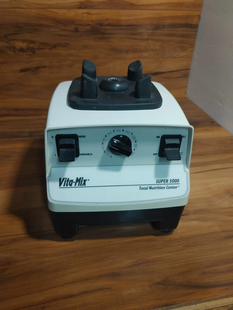 Tested and working. Introducing the Vitamix Super 5000 VM0103 Blender in sleek black color. This professional blender has 10 speed settings and 4 blades to handle any task such as whipping, liquefy, puree, vegetables, blend, chop, crush ice, beat, and grind. It comes with two 64 oz canisters and a tamper for easy and efficient blending. The blender is made of stainless steel and has a voltage of 120 V. Its self-cleaning feature makes it easy to clean and maintain. This versatile blender is perfect for soup, nuts, fruit, dough, juice, frozen drink, vegetable, dips & spreads, and smoothies. It weighs 18 lbs and has components included a blender, canister, lid, pusher, and tamper. Get ready to blend like a pro with the Vitamix Super 5000 VM0103 Blender!
