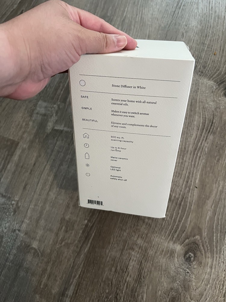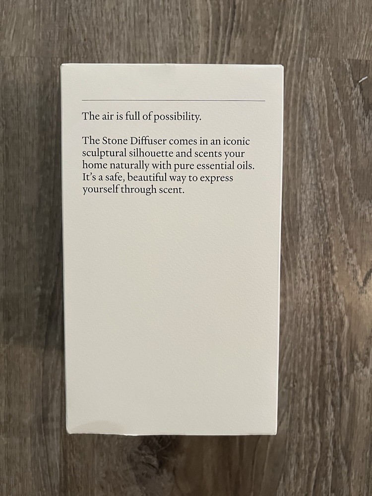 Natural air care Stone uses all-natural oils to safely scent your space. That means no harsh chemicals or other toxic ingredients. Functional art Stone's high-quality matte ceramic cover looks like a piece of pottery in your home. Flexible timing Stone has two time settings (4-hour continuous and 8-hour intermittent) to scent your space on your schedule. Safety feature Stone automatically shuts off when either the time setting is done or the water runs out. Ambient light Stone has an optional LED light that gives off a soft glow. Diffusing capacity Stone scents rooms of up to 500 square-feet, making it perfect for bedrooms and living rooms. Size:one size Color:stone white Condition:new in box Offers are welcome Trendy, chic, artistic, smell, minimalist