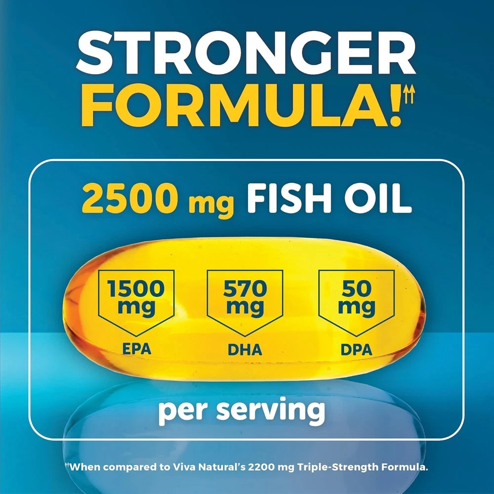 Viva Naturals Triple Strength 2500mg Omega 3 Fish Oil for Women & Men