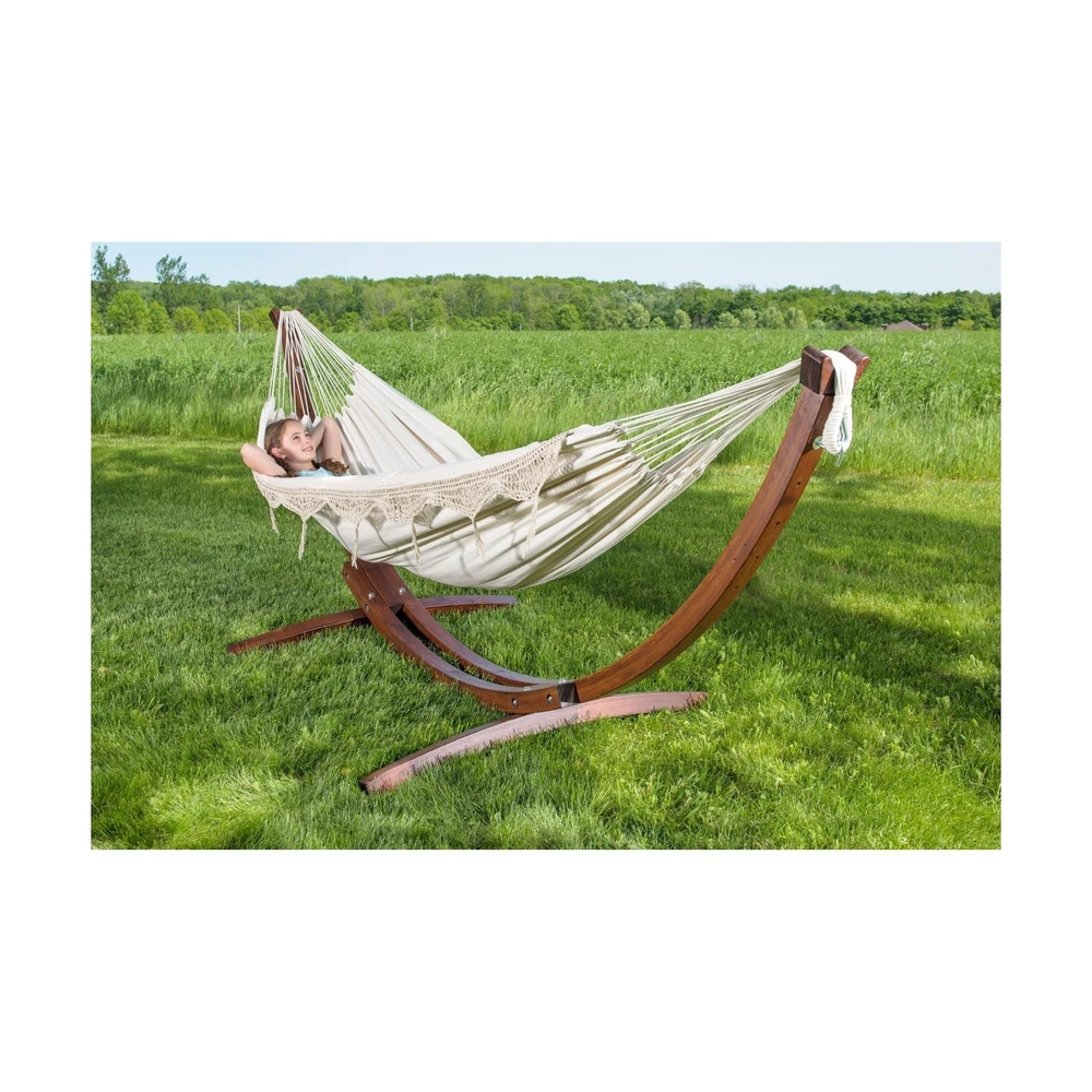 Vivere C8SPCT-20 Solid Combo Wood Hammock, Tropical Description The eye catching solid pine stand sets this double cotton hammock/stand combo apart from the crowd. It is a Natural choice for a rugged design aesthetic or will complement an immaculate, manicured space. The space-saving 81/2-foot fsc-certified pine stand is ideal for your patio, deck or balcony. Made of 100% breathable cotton, this Brazilian style hammock has a tight weave that gives you superior comfort. This hammock's vegetable-dyed cotton will last for years, especially if you bring it in indoors when not in use or during inclement weather. Easily adjustable hammock hooks allow you to decide how low or high you want to lay. Assembled overall dimensions: 102" length x 47" width x 41" height; 56.4 lb. Accommodates up to two adults. 450 lb capacity. Assembly required. Features: Cotton Imported Includes a Vivere double 100% cotton bed hammock with superior long lasting polyester end strings and 8' solid pine stand Ideal for your patio, deck or balcony Easily adjustable hammock hooks allow you to decide how low or high you want to lay Accommodates two adults, 450-pound capacity Made with fsc-certified lumber Product Details: Color: Tropical Brand: Vivere Product Dimensions: 102"L x 47"W UPC Manufacturer: Vivere Item Weight: 47.2 Pounds Item Dimensions L x W: 102"L x 47"W Manufacturer: Vivere UPC: 899134014515 Brand Name: Vivere Maximum Weight Recommendation: 450 Pounds Color: Tropical Seating Capacity: 2 Material: Fabric Handling We will ship all orders within 5 business day of payment. Delivery We Do Not Ship Outside of the Continental US. Return Policy All items qualify for returns within 30 days of receipt. Buyer is responsible for return shipping on any item that is not damaged. Feedback We take our reputation seriously, we buy and sell online, so we understand the value of trust. If you are unsatisfied with your order, please contact us and we will work with you to resolve it to your satisfaction.