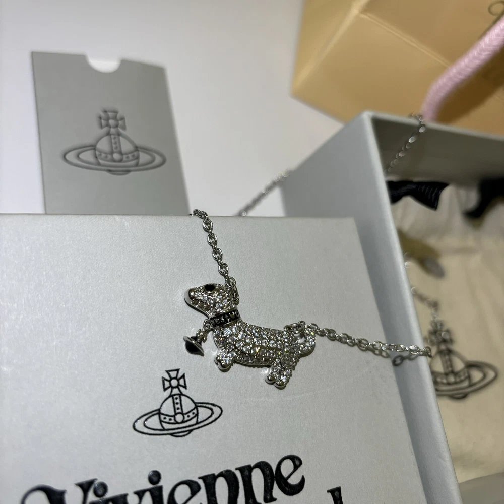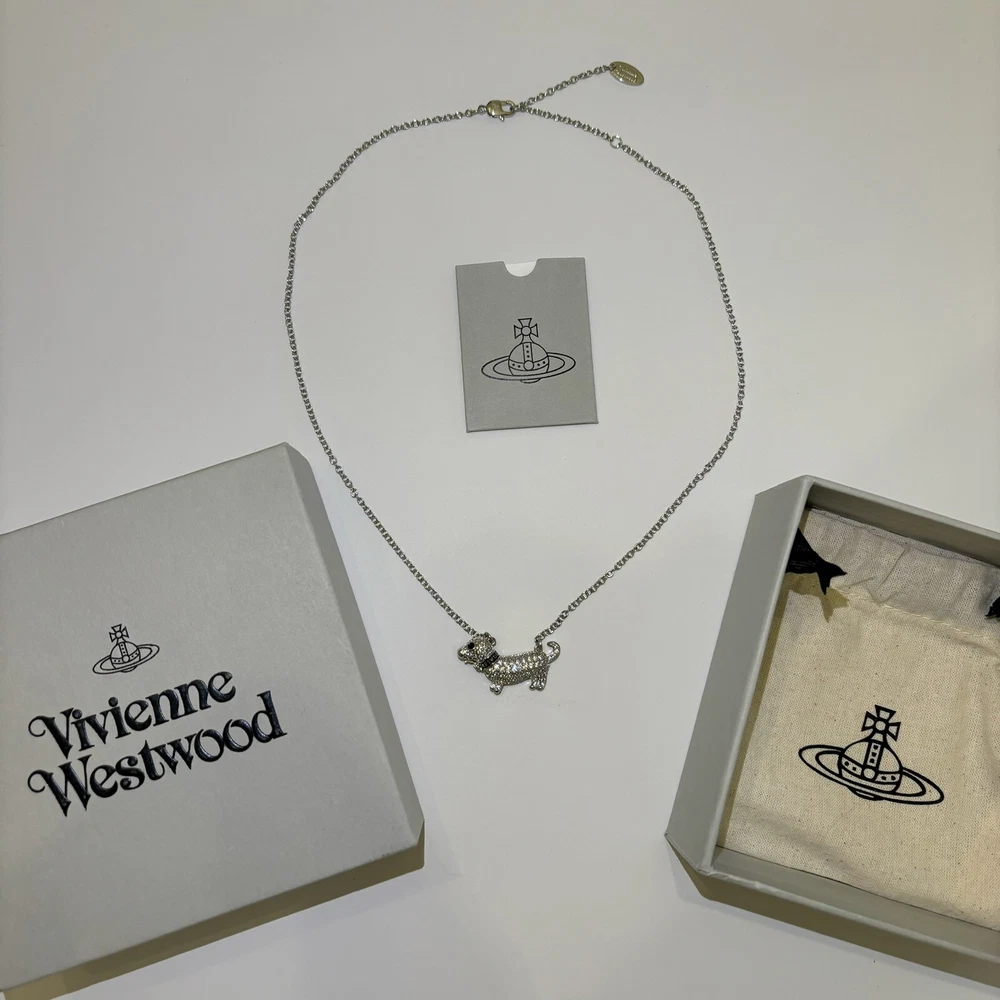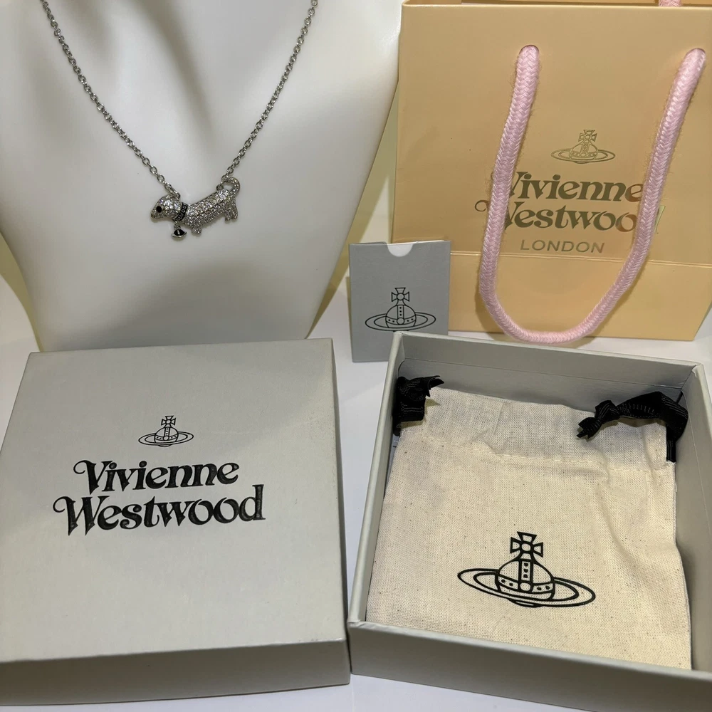 HomeVivienne Westwood Dachshund Silver Tone Pendant Necklace With Box Christmas Gift