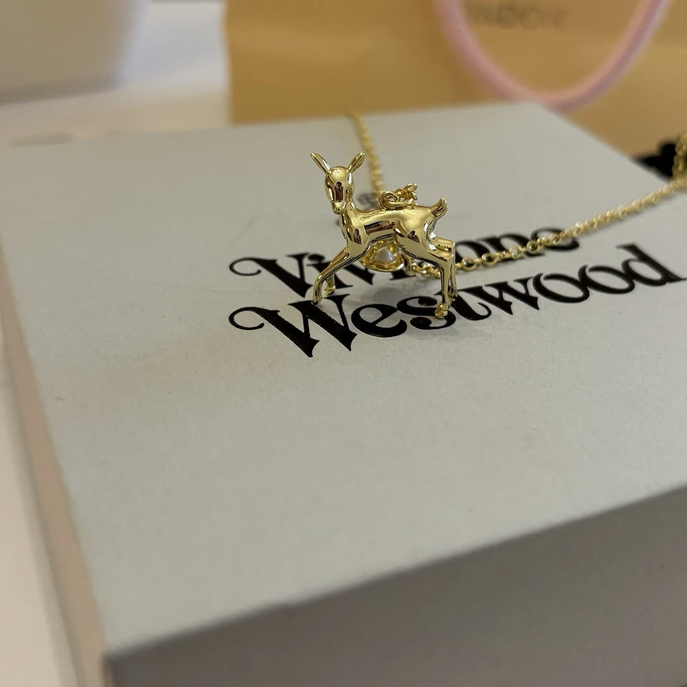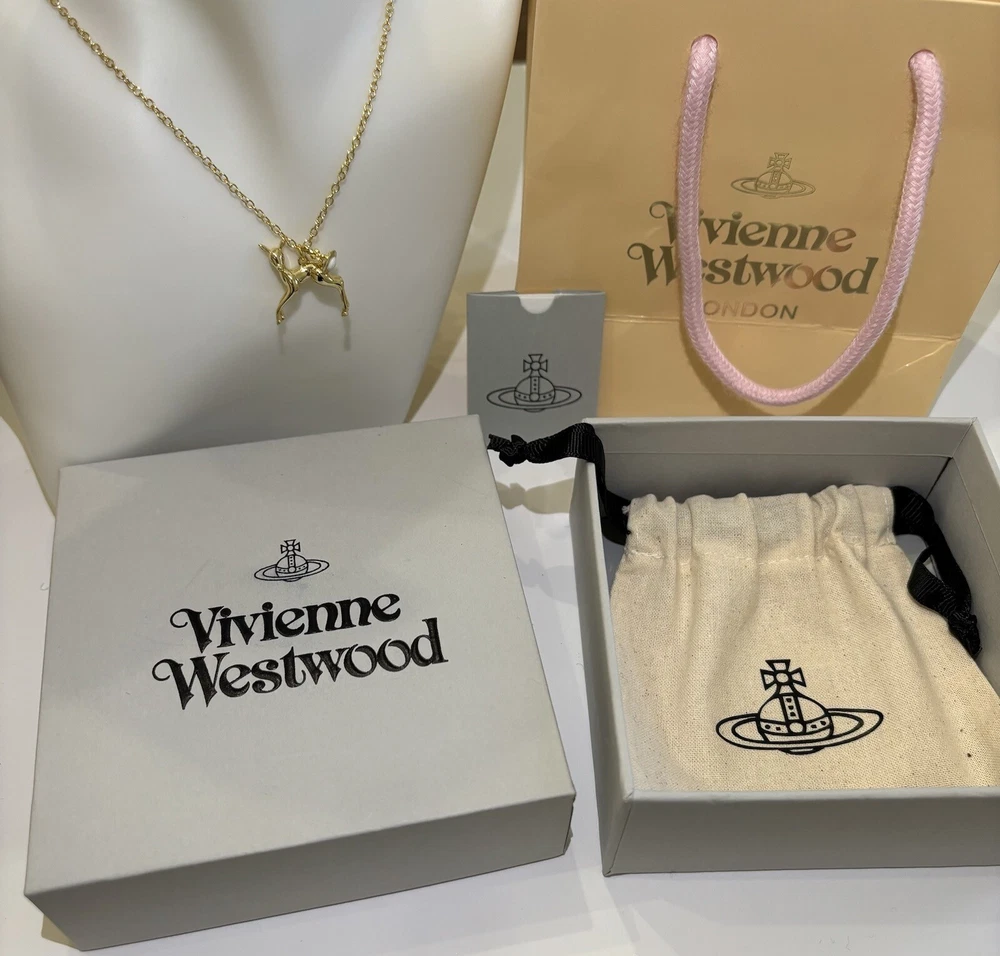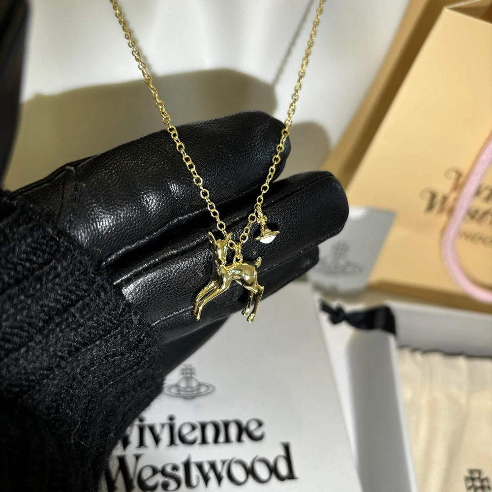 Vivienne Westwood Deer Necklace With Orb Gold Tone Includes Full Packaging