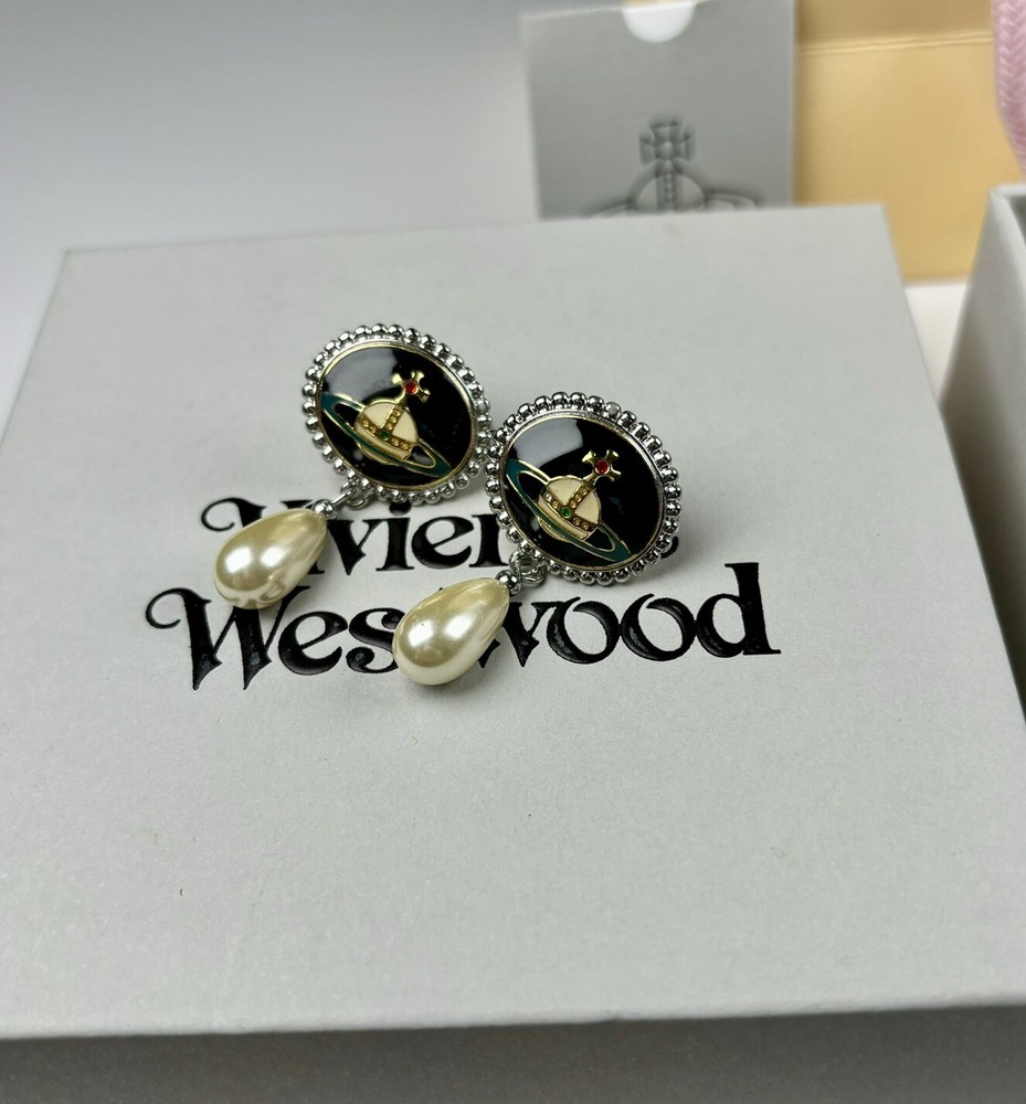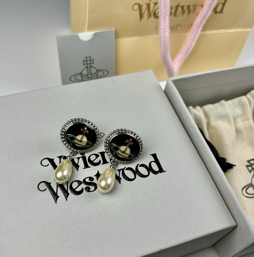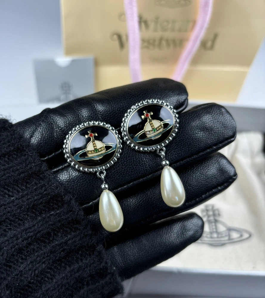Vivienne Westwood Orb Pearl Drop Earrings Gold Tone With box Birthday Gift235