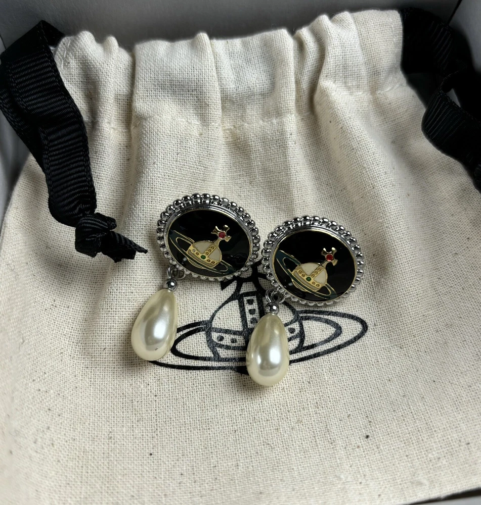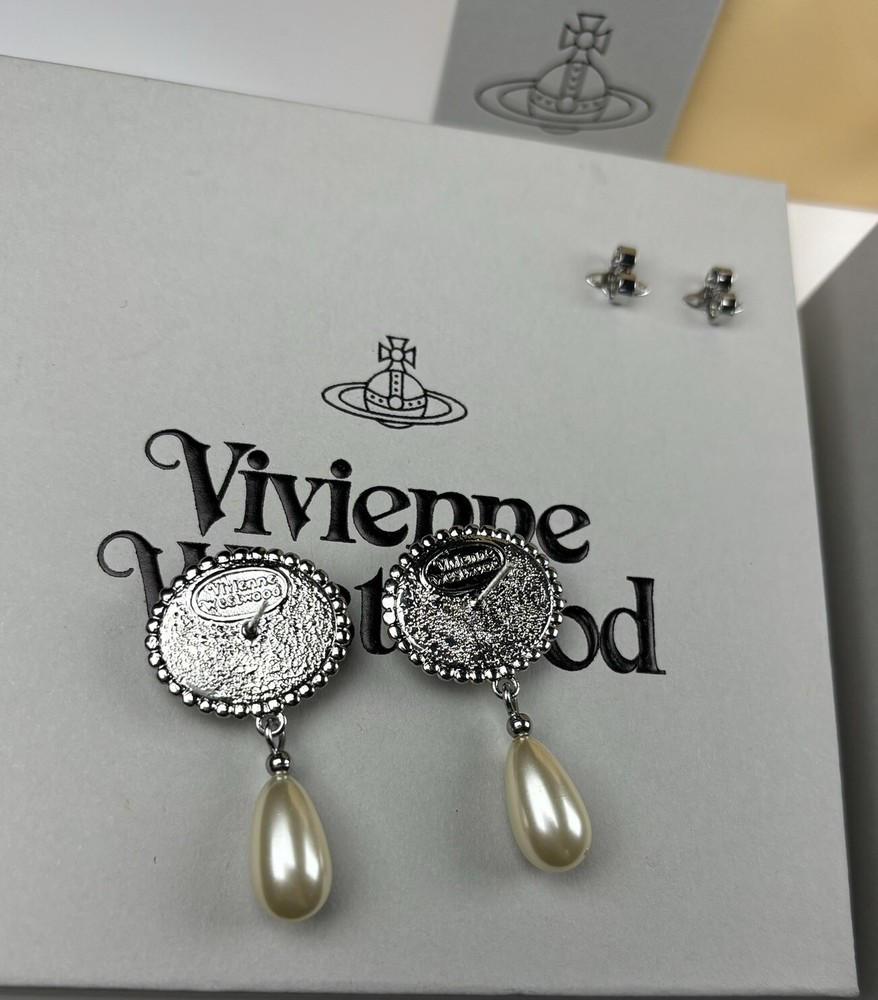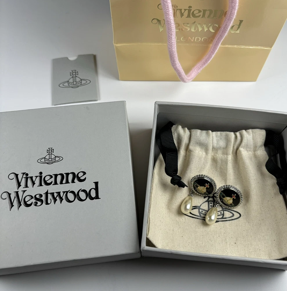 Vivienne Westwood Nana Drop Pearl Earrings Silver Orb Set With Box