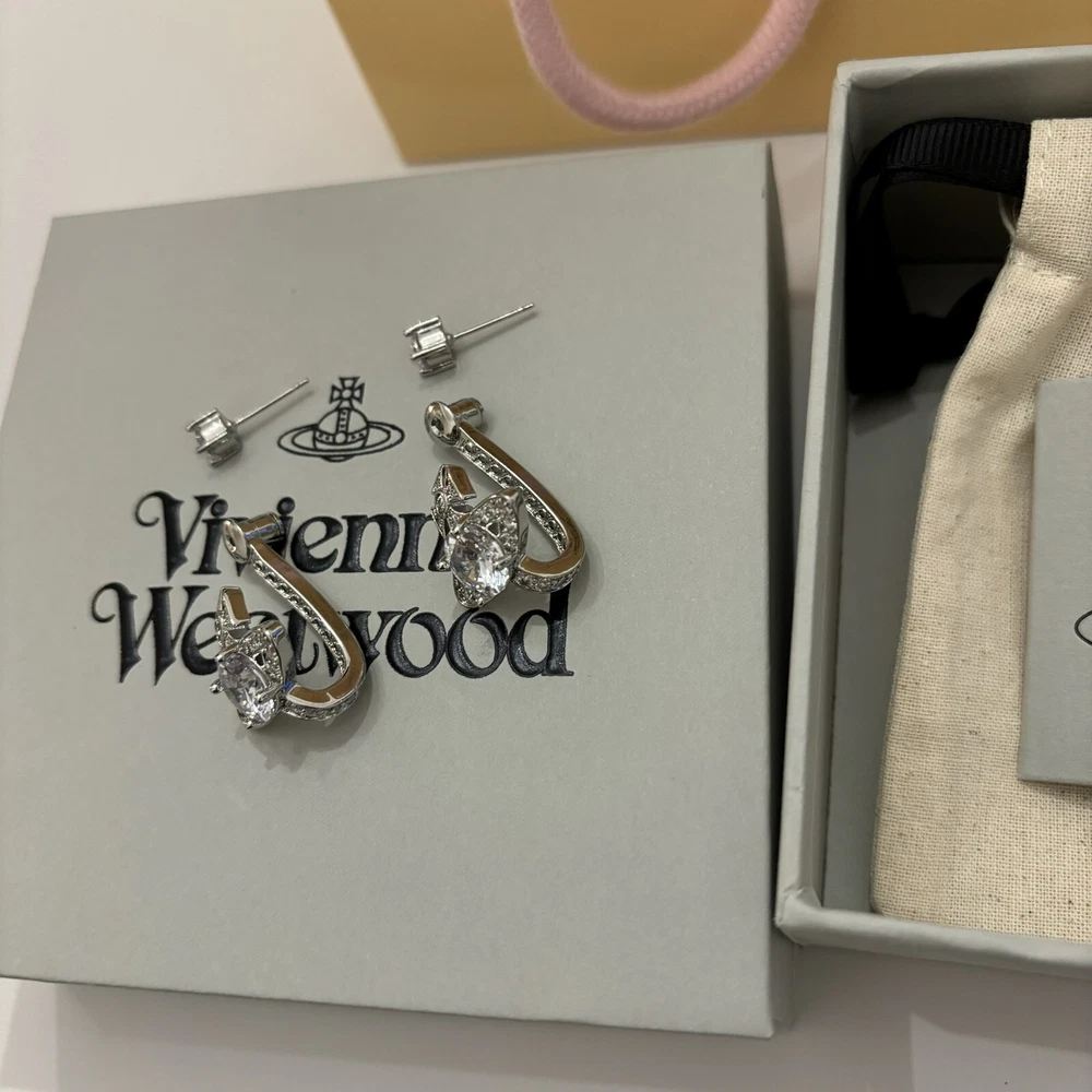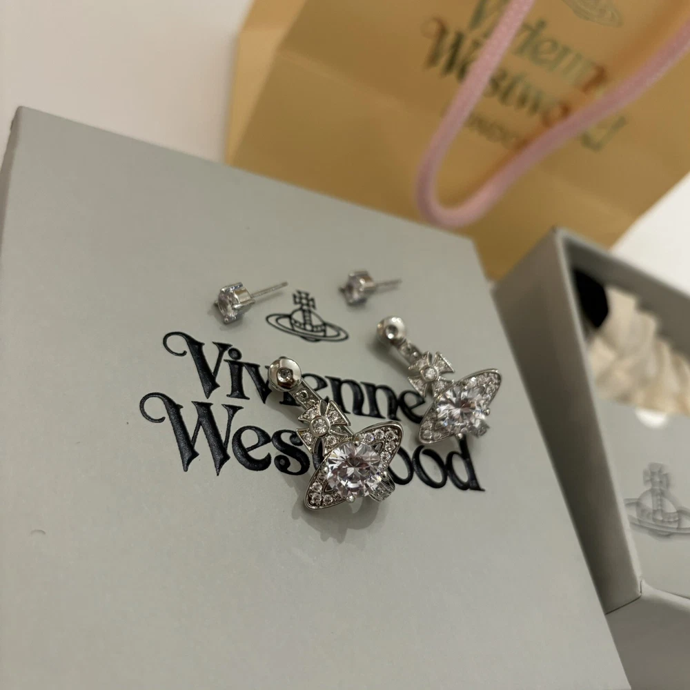 Vivienne Westwood Orb Crystal Earrings Silver Color With box Christmas Gift