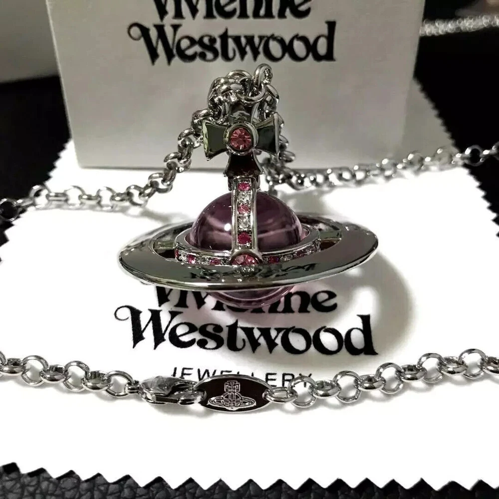 UPC:Does not applyColor:PinkBrand:Vivienne WestwoodMain Stone Color:PurpleMain Stone:CrystalType:NecklaceMetal:Rhodium PlatedStyle:Chaingtin13:Does not applyCut Grade:Excellent