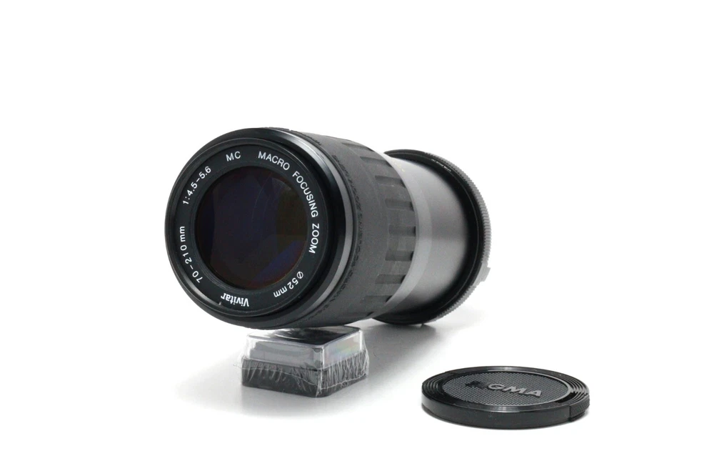 Vivitar 70-210mm f/5.6 MC Macro Zoom Lens with Cap – Vintage Telephoto This Vivitar 70-210mm f/5.6 MC Macro Zoom Lens is a fantastic vintage telephoto lens, ideal for photography enthusiasts and collectors. The lens features multi-coated optics (MC) for improved image quality with reduced glare and enhanced contrast. It is in good working condition and includes a compatible Sigma lens cap for protection. Key Features: ✔ 70-210mm telephoto zoom – Perfect for portraits, wildlife, and macro photography. ✔ Multi-Coated (MC) optics – Improves image quality by reducing flare and enhancing contrast. ✔ Smooth manual focus and zoom operation. ✔ Includes a Sigma lens cap for added protection. ✔ FD mount – Compatible with older Canon film cameras. For use with Canon digital DSLRs , you’ll need an FD to EF mount adapter (sold separately). This lens is a great addition to any vintage camera setup, with minor cosmetic wear but excellent functionality. Whether you’re using it on an older Canon film camera or adapting it for modern Canon digital cameras, it offers a solid, manual focus zoom option.