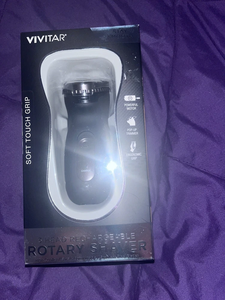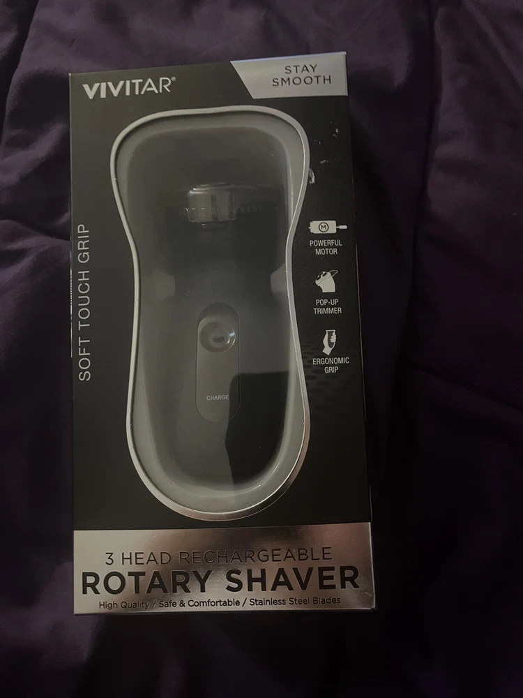Vivitar Stainless Steel Blades Rotary Shaver 3 heads Black Rechargeable New