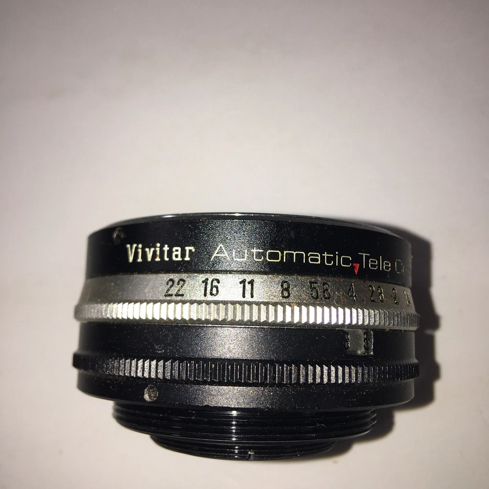 The Vivitar automatic Screw On 2X Telephoto Converter is a used lens attachment designed for telephoto photography. It is specifically intended to double the magnification of the camera's existing lens, allowing for closer and more detailed shots from a distance. The converter comes with a carrying case for convenient storage and transport, making it easy to bring along for outdoor or on-the-go photography sessions. The brand Vivitar is known for producing quality camera accessories, ensuring reliable performance and compatibility with various camera models.