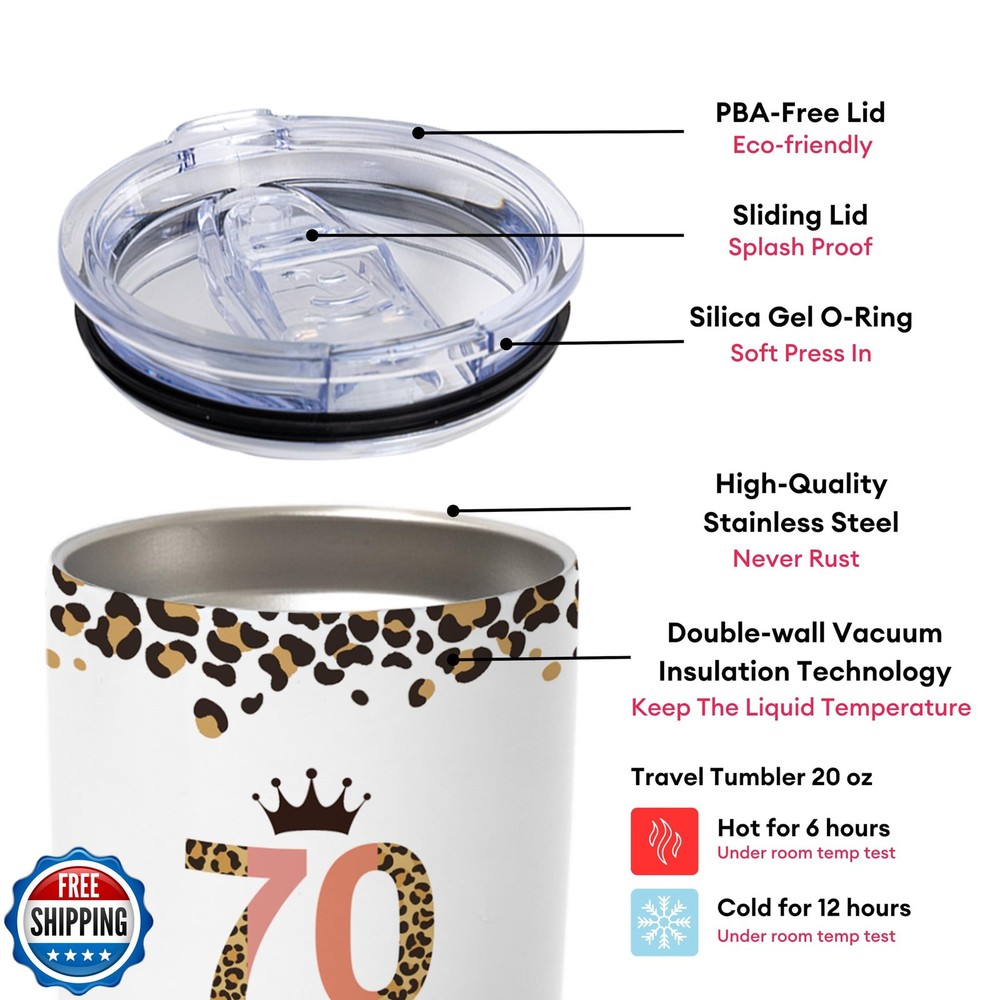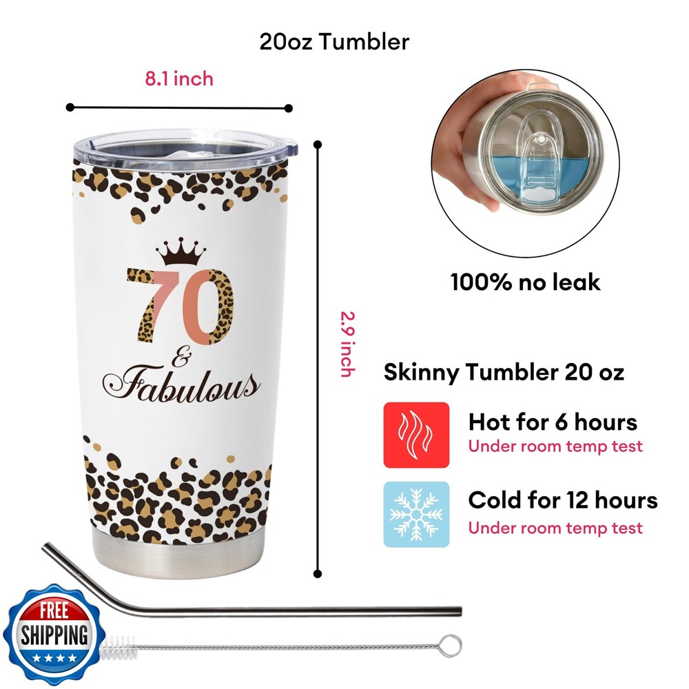 Vivulla68 Happy 70th Birthday Gifts For Women, Best Gifts Idea For 70 Year Old Woman, 1955 Birthday Gifts Women, 70 Birthday Gifts For Women Turning 70, 70 Year Old Birthday Tumbler With Lid And Straw Features Best Gifts For 70 Year Old Woman: Surprise your mother, grandma, her with a unique and cool gift for her 70th birthday. A 70th birthday tumbler is not only a great way to celebrate this special milestone, but it's also a gift that she'll use and appreciate every day. 70 Year Old Birthday Gifts For Women: This 70th birthday gifts for woman themed idea makes the perfect choice for putting a smile on her face on their special day. The recipient of this gifts for a 70th birthday will get a great laugh and enjoy seeing this great design every time they pour themselves a cup of coffee or tea. Cool Gifts For 70 Year Old Woman: Every one will enjoy taking sips of coffee, tea or chocolate from this 70th birthday tumbler. Give these 70 birthday gifts women to your coffee lover mom, dear old grandma / grandmother on Mother's Day, Valentine's Day, Birthday, anniversaries, & other occasions. Gift Ideas For 70 Year Old Woman: Birthdays are very important days in our lives. Every birthday means that we say goodbye to the old year, and welcome a chapter to cheers to 70 years. Everyone hopes to get wishes from family and friends. We create 70th birthday gifts women and for all kinds of people who deserve the best of the best. Enjoy Your Shopping Experience. Vivulla68 70 tumblers for women and men are High-Quality and made with high stainless steel. Take our tumbler/cups with you to keep you hydrated and enjoy your beverages (water, tea & coffee) all day long. The Best Customer Support: Our company culture is all about Customer Care and Customer Experience. That's why we offer you 24/7/365 Support for any questions you might have. Shipping Free & Fast Shipping: We offer free shipping to most of the USA with a normal delivery time of 3-7 days. However, due to the current situation, additional delivery time (up to 3 weeks) may be required for some items. Alternative Carriers: We may use alternative carriers (e.g., USPS, FedEx, UPS) to ensure your package arrives safely and on time. Due to the use of multiple carriers, we are unable to provide a tracking number automatically. Handling Time: Orders are processed and shipped within 1-2 business days of receiving cleared payment. Shipping Restrictions: Shipping to Alaska, Hawaii, Puerto Rico, Guam, and other US territories may incur shipping charges or delivery restrictions. Please contact us before ordering, or your order can be refunded/cancelled. State Restrictions: Certain items may not be shipped to California due to state regulations. Contact for Tracking Updates: If you require tracking updates or have any concerns about the delivery of your order, please feel free to contact us, and we will be happy to assist you. Return Policy 30-Day Hassle-Free Returns: If you are not completely satisfied with your purchase, you can return the item for free within 30 days of receiving it for a full refund or exchange. Easy Return Process: Contact us, and we will provide you with a prepaid return shipping label and detailed instructions. No Restocking Fee: There are no restocking fees for returns. However, the buyer is responsible for return shipping costs if the return is not due to a seller"s error. Refund Processing: Refunds will be processed within 1 business day of receiving the returned item in its original condition. Feedback Your feedback is extremely important to us. We strive to provide the best products and customer service possible. If you are satisfied with your purchase, please take a moment to leave us a positive review. If you have any concerns or issues with your order, please contact us before leaving negative feedback. We are committed to resolving any problems and ensuring your satisfaction. Contact Us If you have any questions or concerns, please feel free to reach out to our customer support team. You can contact us through the eBay messaging system. We are available Monday to Friday, 9:00 am to 5:00 pm EST, and we will do our best to respond to your inquiry within 24 hours. Thank you for supporting our small family business!