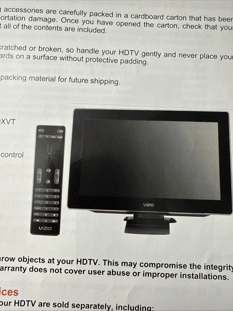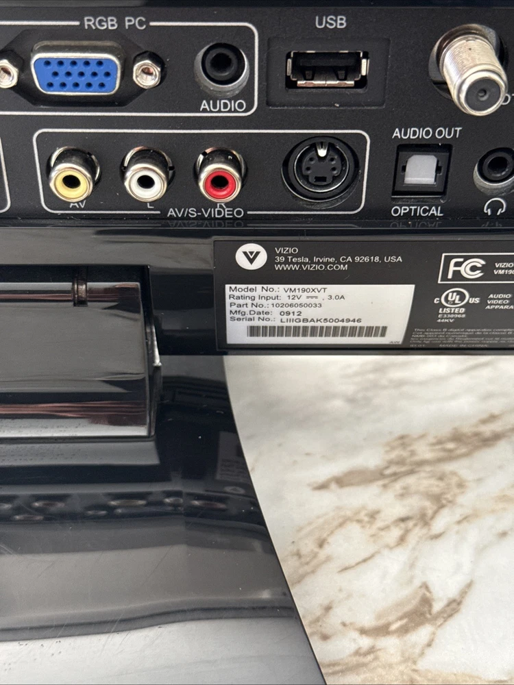 Vizio VM190XVT 19” Edge Lit Razor LED LCD TV Used Tested Works With Remote. Condition is Used. Shipped with USPS Ground Advantage.