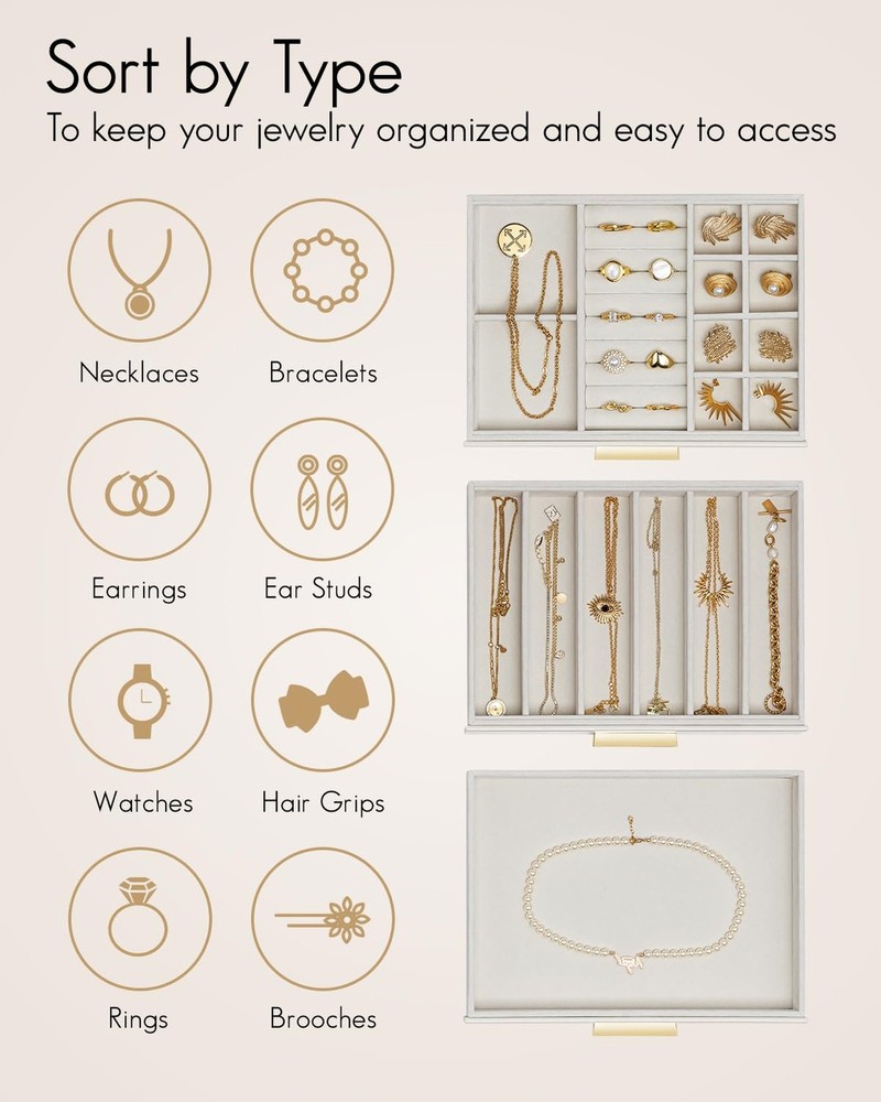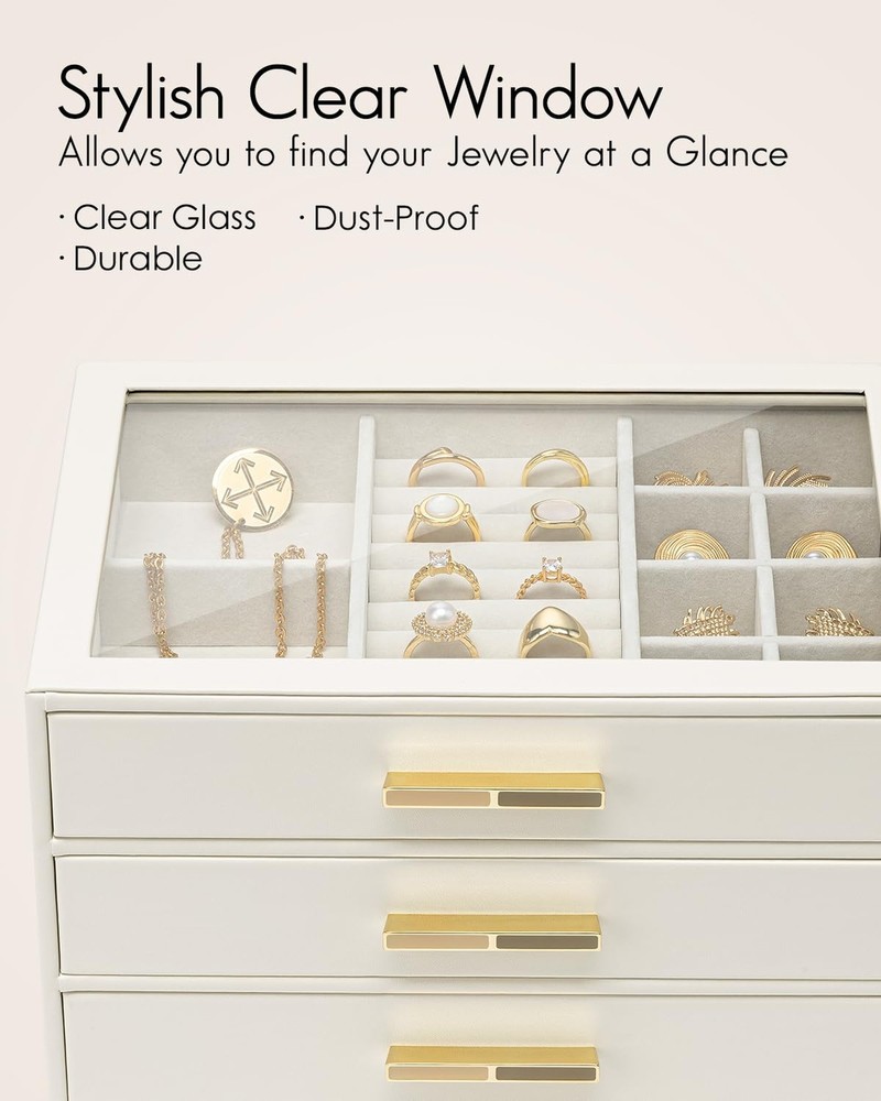 $ 21.65CASEGRACE 2-Layer Glass Top Jewelry Box with Double Drawers for Women - Elegant Organizer