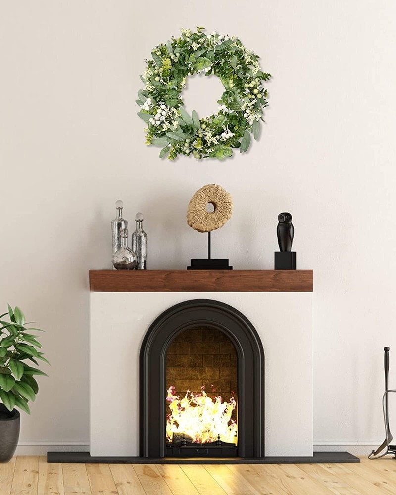 Vlorart Artificial Spring Summer Greenery Wreaths for Front Door Green Eucalyptus Leaf Wreath Decor Boxwood with Big Berries for Farmhouse Outside Year Round Item Description About this item 【All year round wreath】Available all year round:spring, summer, fall, and winter. Add themed decorations according to the festival, this is a flexible and versatile wreath. 【Full and realistic】 Vlorart's handmade green eucalyptus wreath features eucalyptus leaves, boxwood, white/green berries, andmany small berries embellishedon it, making the wreath full, natural and realistic. Its elegance add a vibrant and pleasant vibe to your home. 【Perfect Size】 This spring wreath is 19 inches in diameter. Each rustic farmhouse eucalyptus wreath is packed in a sturdy and exquisite box, suitable as a gift for friends. Note that because the wreath is compressed by the box to avoid being damaged during delivery, please fully stretch it to reach its maximum size. 【Versatile】This gorgeous wreath is a versatile decoration. It is suitable for all seasons of the year, spring, summer, fall and winter. You can add elements of each season on it, such as maple leaves, bells, etc. When you design it yourself, you will find that your wreath is the most unique scenery. It can be hung on the wall, front door, porch, bedroom, living room, etc. It is perfect for indoor and outdoor, weddings and parties. It's elegance is sure to impress your family and friends. 【Durable】Made of high-quality materials. Colors will never fade; leaves will never fall; berries will never rot. No watering and special cleaning required. Can be used for years to come. 【TIPS】 If you have any problem with our products, please contact us immediately,we will reply you ASAP. › See more product details This eucalyptus leaf wreath measures 18inch with realistic foliage and full berries.Ideal for front door, wall, fireplace, shop window, room decoration. This eucalyptus leaf wreath measures 18inch with realistic foliage and full berries.Ideal for front door, wall, fireplace, shop window, room decoration. Payment We accept payment only through PAYPAL Shipping We ship products worldwide through standard express courier service, it will reach within 7 to 10 days to abroad buyers, we ship the product after recieved clear payment and give full information about shipment to the buyer Return We accept product return within 7 to 21 days from delivery date but product should be in original position and not in damaged condition,the return shipping charges will be buyer responsibility