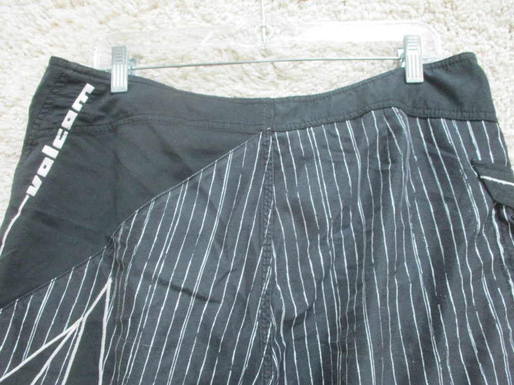 Volcom Board Shorts 34 Mens Black Pinstripe Pockets Swim Trunks Bathing Suit