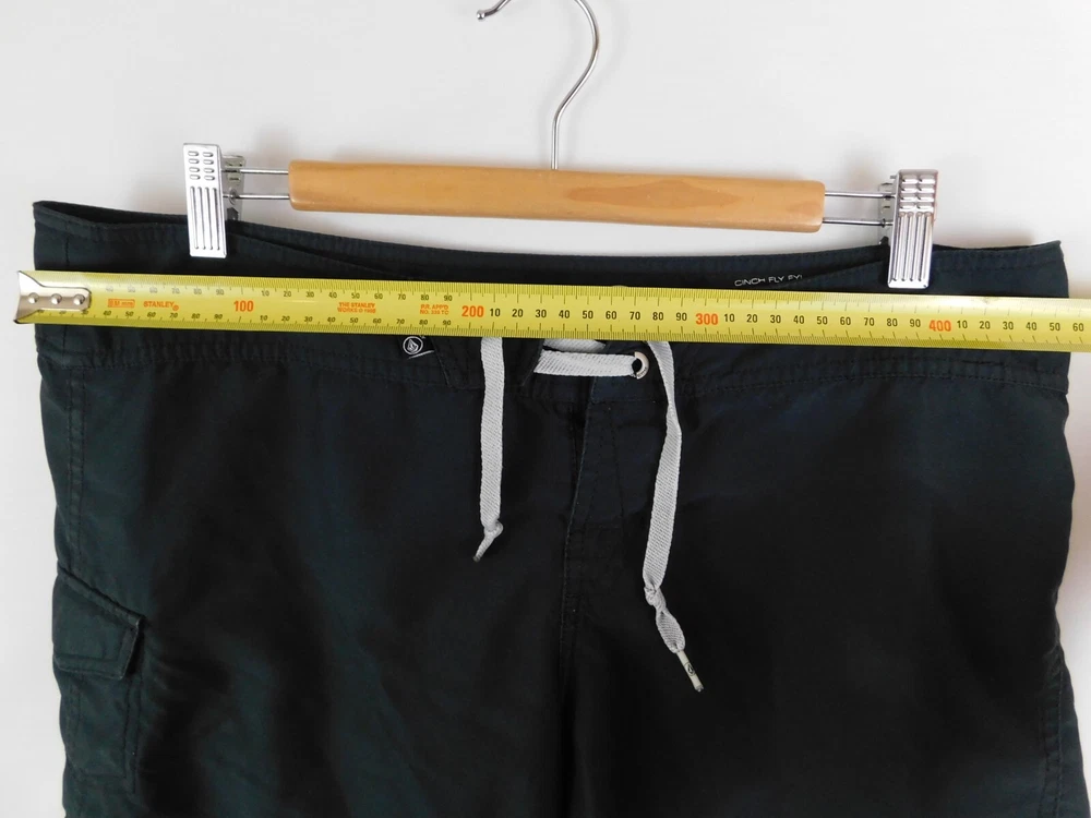Get ready for your next beach adventure with these Volcom Board Shorts in size 27. The swim bottoms are designed for men and come in classic black to suit any style. Made with a regular fit, these swim shorts provide comfort and freedom of movement. The Swim Bottom Style features boardshorts with a length that falls above the knee. These swim bottoms are perfect for hitting the waves or lounging by the pool. Get your hands on these stylish Volcom Board Shorts today!