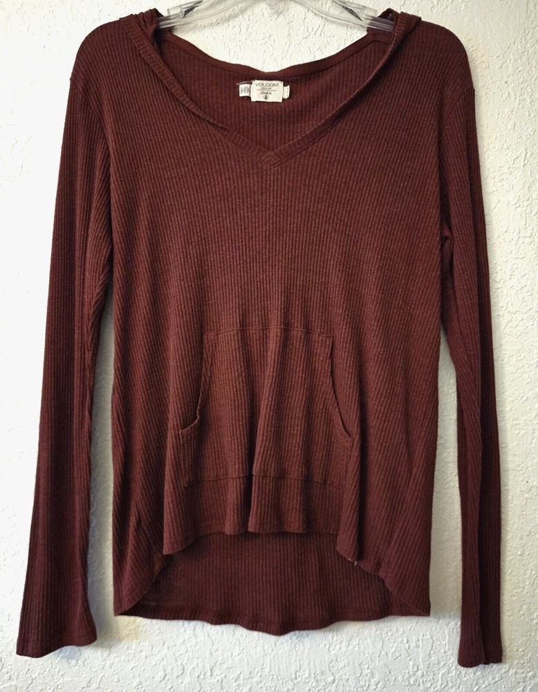 Volcom Ladys Ribbed Lightweight Hoodie Kanga Pocket Sz L (16)