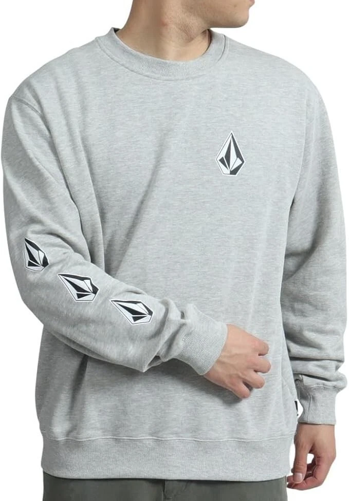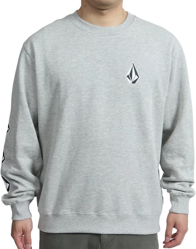 Volcom Men's Iconic Stone Crew Sweatshirt Size: Small Color: Heather Gray Content: 60% Cotton / 40% Polyester