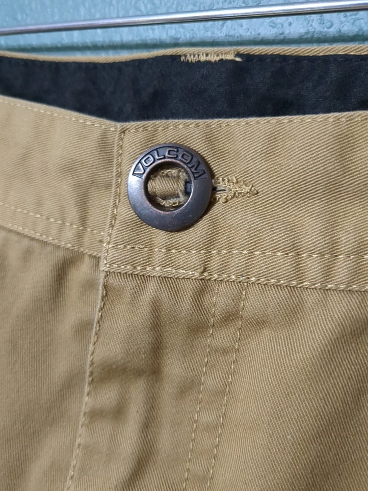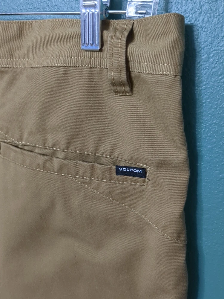 Elevate your wardrobe with these stylish Volcom Men's Chino Flat Front Shorts in Khaki. Perfect for any occasion, whether it be for travel, workwear, or casual wear, these shorts feature a solid pattern and zip closure. The cotton blend material and medium fabric wash provide comfort and versatility, while the stretch feature ensures a perfect fit. These shorts are perfect for skateboarding enthusiasts with its modern design and flat front feature. The beige color and regular fit make it a great addition to any outfit. Get ready for any season with these versatile shorts, whether it be winter, summer, fall, or spring.