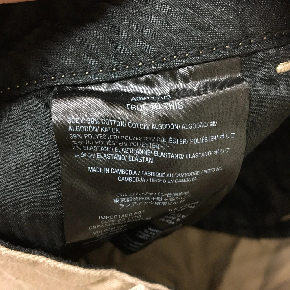 Features: Easy Care, Pockets, Stretch Inseam: 11 in Fabric Wash: Medium Pattern: Solid Department: Men Front Type: Flat Front gtin13: Does not apply Occasion: Casual, Travel, Workwear Color: Beige Theme: Modern Accents: Button, Logo, Zipper Closure: Zip Garment Care: Machine Washable Pocket Type: Slash Pocket Rise: Mid (10-12 in) Size Type: Regular Brand: Volcom Style: Chino Country/Region of Manufacture: China Fit: Regular Waist Size: 38 in Seller Notes: “Very Good Used Condition. Please, See Pictures for Full Condition and Measurements.” UPC: Does not apply Season: Fall, Spring, Summer, Winter Size: 38 Material: Cotton, Cotton Blend, Polyester, Spandex