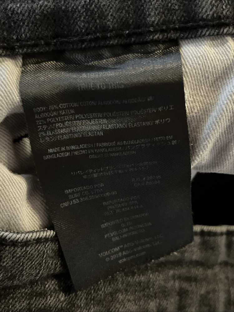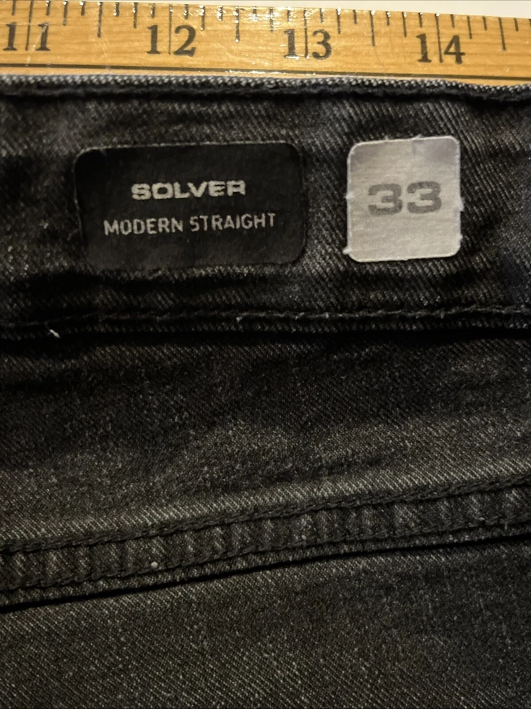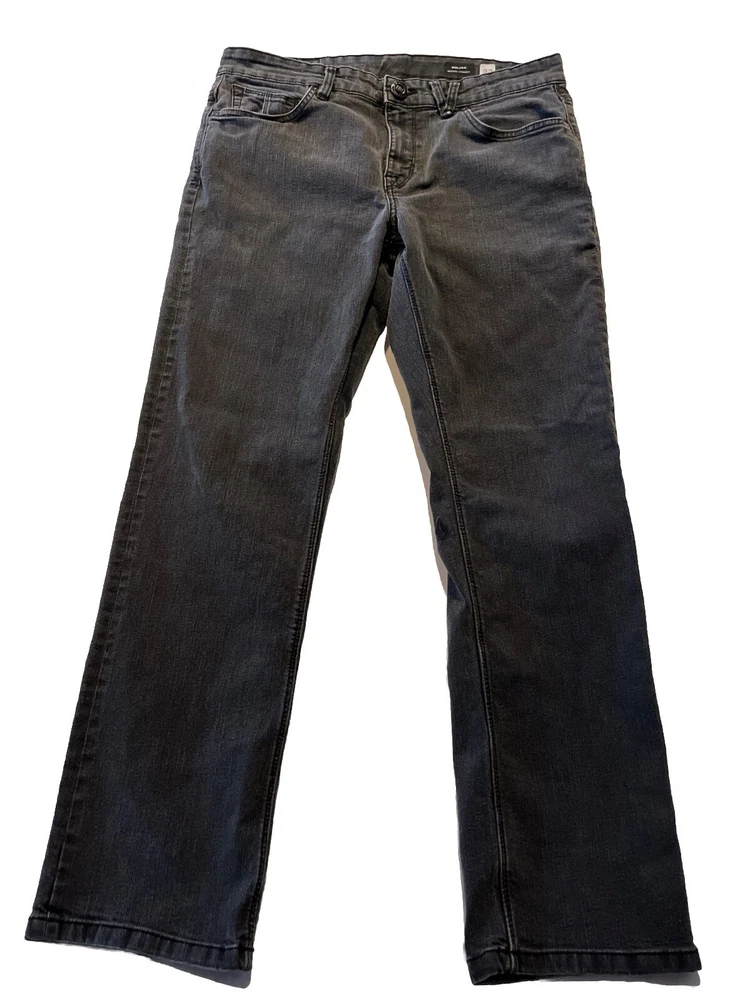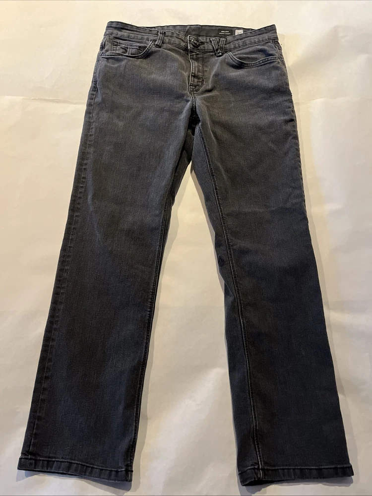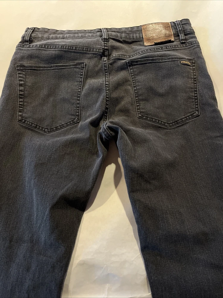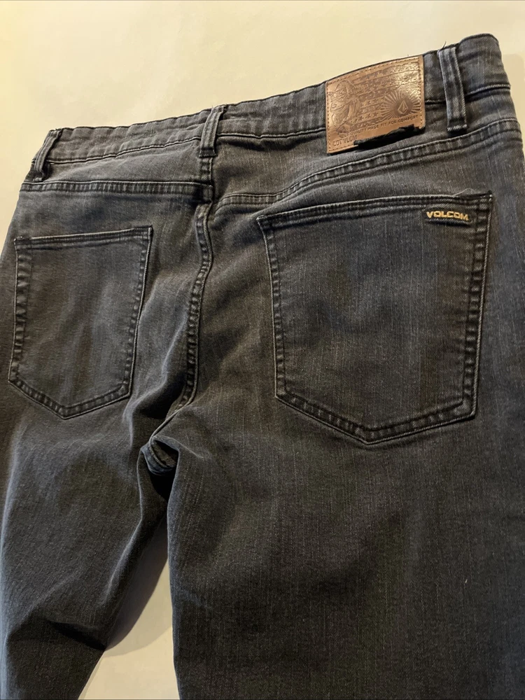 Volcom Solver Modern Straight Denim Mid Rise Jeans Dark Wash Gray Mens 34x31 Fit