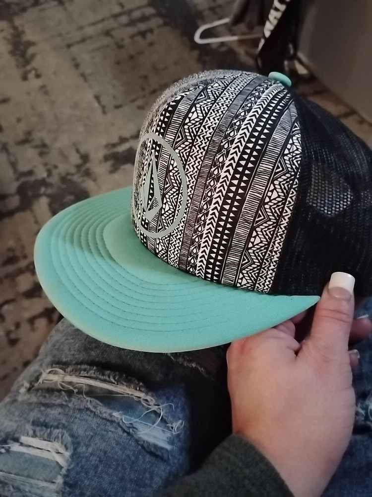 Volcom Trucker Hat Adjustable Snapback One Size Genuine BEAUTIFUL COLORS Turquoise, black, & white Volcom logo One Size fits MOST Adjustable snapback π A few microscopic defects, I think they will come out if washed. Never been washed, worn once. Offers/questions/measurement requests are welcome π