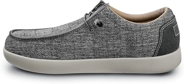 The Volcom Workwear Chill Skate Work Shoe in gray is designed for men in size 9 W. These work shoes feature a composite toe for protection, slip-resistant rubber outsoles, and comfortable canvas uppers suitable for all seasons. The VOLCOM Chill style ensures a stylish yet practical footwear option for work environments, providing both safety and comfort for the wearer. ASTM F2413 Composite Toe Electrical Hazard Slip Resistant - ASTM F3445 No Metal Soft Landing Comfort Insole helps you rebound with every step Composite Toe protects your digits against all dangers, meetings ASTM F2413 standards Grip Styk Stone-Themed Slip Resistant outsole works hard to prevent you from wiping out, meeting ASTM F3445 standards