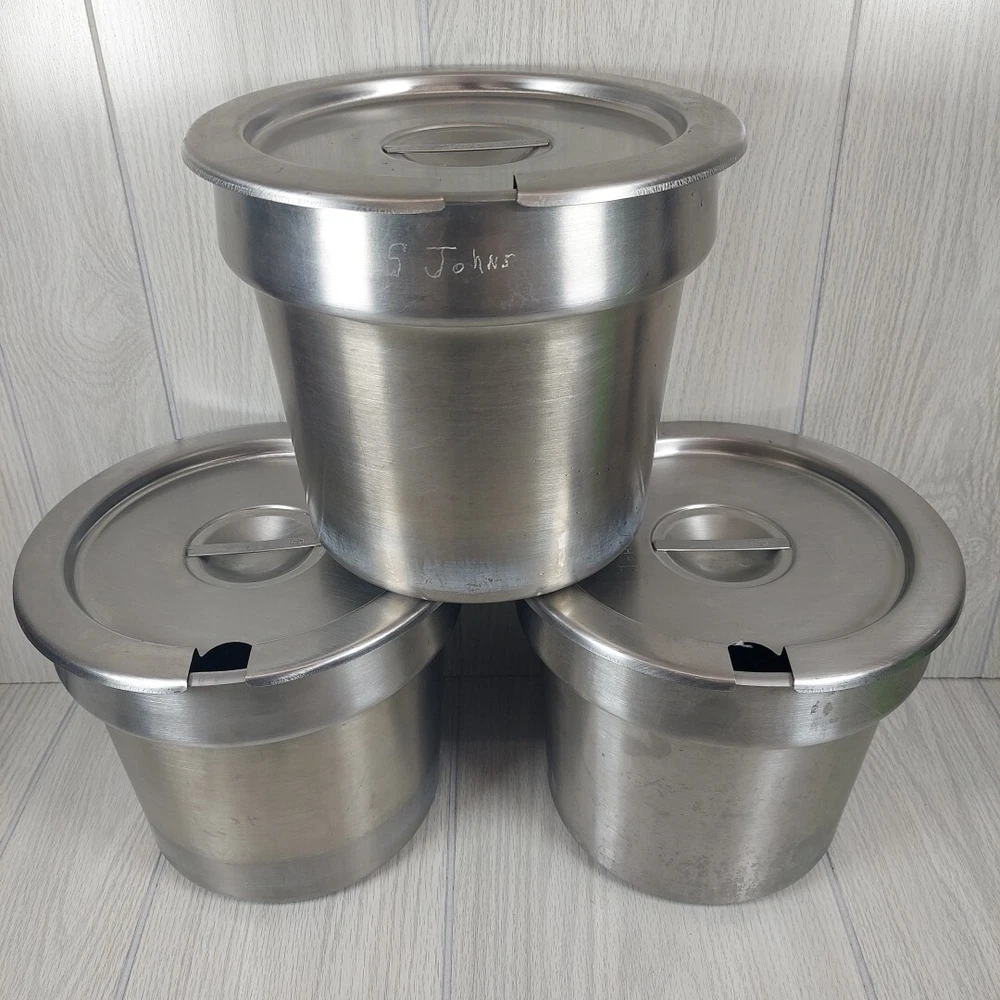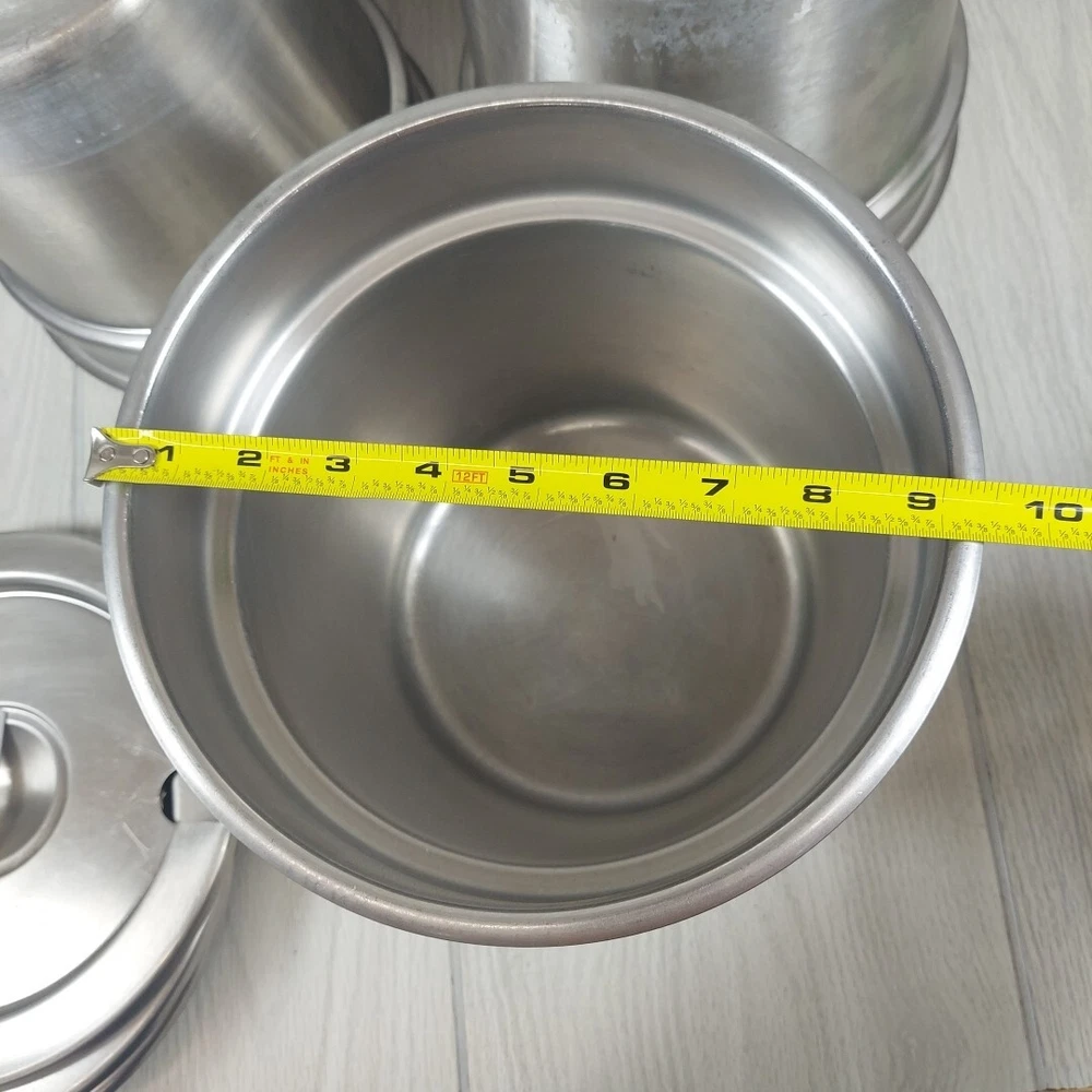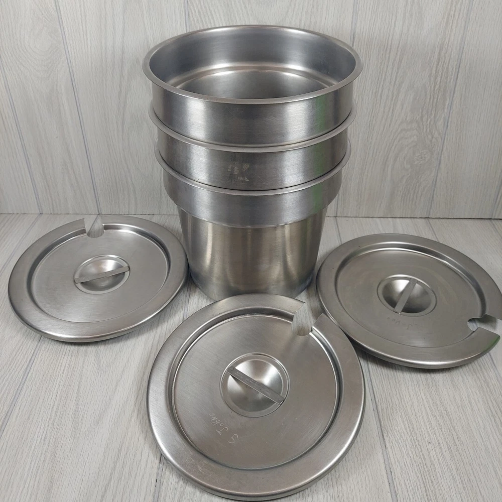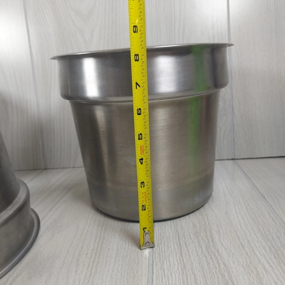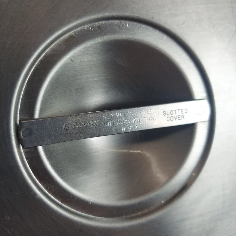 Vollrath Buffett style Soup pot Stainless Steel 6pc Inset 78184 6.9L Lid W/ Ladle Hole USA NSF. Condition is pre-owned. They have etching marks.