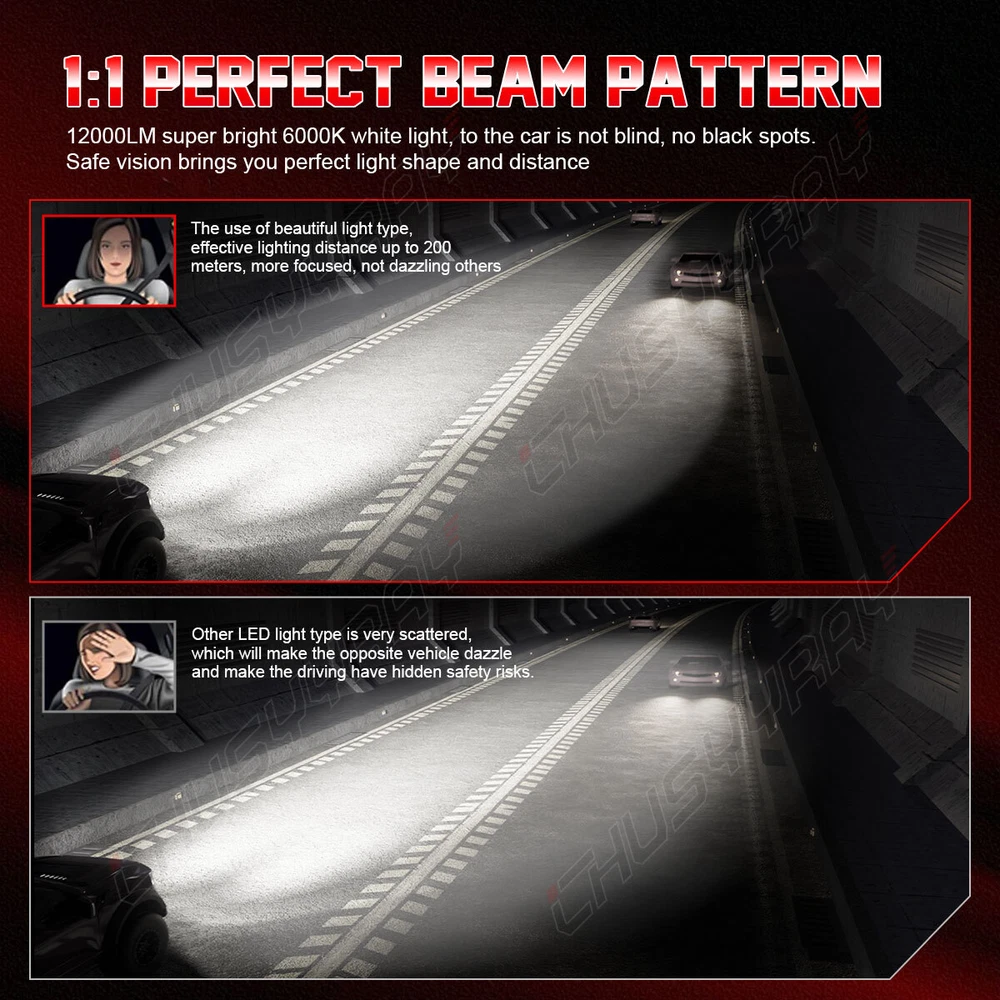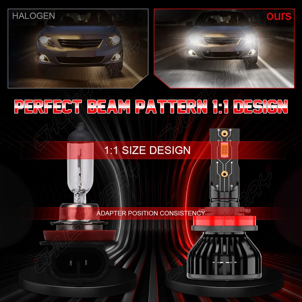 Purchase Notes: *Compatible mentioned can not show up all Car model. Please check whether it is fit before purchase. *Professional installation is highly recommended if you have any difficult in installation. SPECIFICATIONS REAL 1:1 LED Headlight Beam Bulbs Kit White Bright Lamps Plug-Play Model: H8/H9/H11&9005/HB3 Lumen: 12000LM/set Light Color: 6000K white LED TYPE: Upgrade Latest CSP LED LED Quantity(per bulb): 6pcs Temperature control: Without Heat Dissipation Mode: Aluminum heat dissipation Suitable for: Headlamp Service life: 50,000 hrs Waterproof: IP68 Features: *Real 1:1 plug-play size 1:1 Bulb size design, fit almost 99% vehicles installation. *Superior light type The light distribution distance is nearly 1mm, and the position of the luminescent point is the same as the original halogen lamp, which does not affect sight of the incoming car. *High brightness LED headlight features a better performance on brightness, providing further and wider visibility for you to see the deer, wild animals, falling rocks, or other obstacles in advance to ensure safer driving at night.(3-4 times brighter than the original car.) *Energy-saving Brighter light output with much less power consumption. *Simple installation 5-minute installation, plug-and-play design, with the exact specifications as factory halogen bulbs. No additional tools or modifications are needed. Simply twist off the original car lamp, insert the bulb, and rotate to lock it in place. If you encounter any issues with your vehicle model, please contact the customer service center for support. *EMC EMC resists electromagnetic interference to provide a safe driving environment. NOTE: Fits 99% of vehicles: In-built fully upgraded CANbus. Some sensitive car brands such as for Mercedes-Benz, for BMW, for Volvo, for Dodge, for Ford Fusion, for Ford Focus, for Ford Escape, etc, may flicker after installation (not a quality issue),specific Canbus