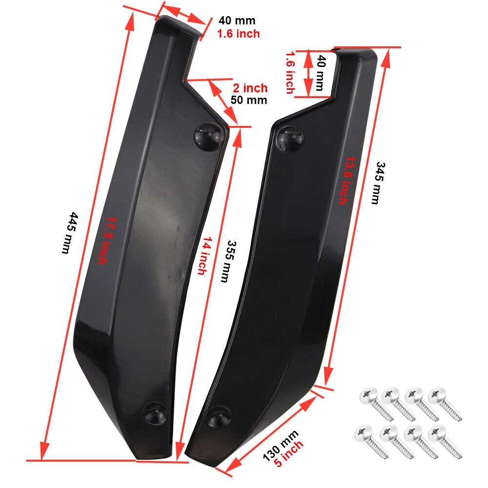 1.Front Bumper Lip Body Kit Spoiler Feature: Made of Updated durable and sturdy ABS plastic, adding stiffeners, no deformation in long-term use. Longer and wider than others. Provide an elegant and personalized appearance. Prevent the car from being scraped and improve the level of the decoration of the car. Adjustable angle, suitable for most models of Cars. Come with 2 blocks, More convenient installation, and stable adjustment. This is a set(4 pieces) front bumper cover lip front spoiler ***Instruction Not Included, Professional Installation Is Highly Recommended Specification: Type: Front Bumper Lip Body Kit Spoiler Material: High quality ABS Polyurethane Color: Glossy Black Weight: about 3.5 lbs Placement on Vehicle: Front; Lower Tough&Hard-wearing: Made from good-quality ABS Material with excellent abrasion-resistance and toughness, durable in use and NOT easy to deform. Dynamic Shape Design: With dynamic shape design, the front bumper lip can reduce wind resistance while driving. Protection: The sturdy materials of this front bumper lip can reduce damage and prevent the car from scratches. Advantages: 1.Prevent the car from being scraped and improve the level of the decoration of the car. 2.Reduce the wind resistance and disturbing effect. 3.Give 3D visual effect, Provide an elegant and personalized appearance 2.Side Skirt - Type: Side Skirt Extensions Splitters Diffuser, Side Skirt Extensions - Material: ABS - Color: Glossy Black - Length Size: 2.2m(86.6'') - Placement on Vehicle: Left & Right Feature Improve the appearance of the car, enhance the protection, and make the car stylish and cool Using matching bolts for easy installation(Screws and instruction are included). It requires drilling holes to attach the side skirts stably to the vehicle. (Application of double-sided tape may provide more stability and is very highly recommended. However, the double-sided tape is not included. ) Product may be trimmed to accommodate vehicle's side skirt length. ( Please measure your vehicles length before purchasing. ) 3.Strut Rods 1. Length: The length can be adjustable from 7.87" to 13" (200-330mm) 2. Material: Stainless Steel 3. Quatity: 2 x Stainless Steel Bumper Lip Splitter Tie Rod Bars. ( Stainless steel has weldability, corrosion resistance and heat resistance.) 4. Position: This exquisite and compact lever is mainly fixed on the body components (front and rear surround, skirt, head and tail lip), and can also be installed in the car center console or interior trim panel 5. Require: Product will require drilling holes into the bumper and/or lip/diffuser to attach safely to the vehicle. Package Included 1 x Front Lip Chin Bumper Body Kits Pair of 2.2m Side Skirt Extensions (L&R) 2 X Strut Splitter Rods 10 x Screws On Aug 11, 2024 at 22:55:21 PDT, seller added the following information: