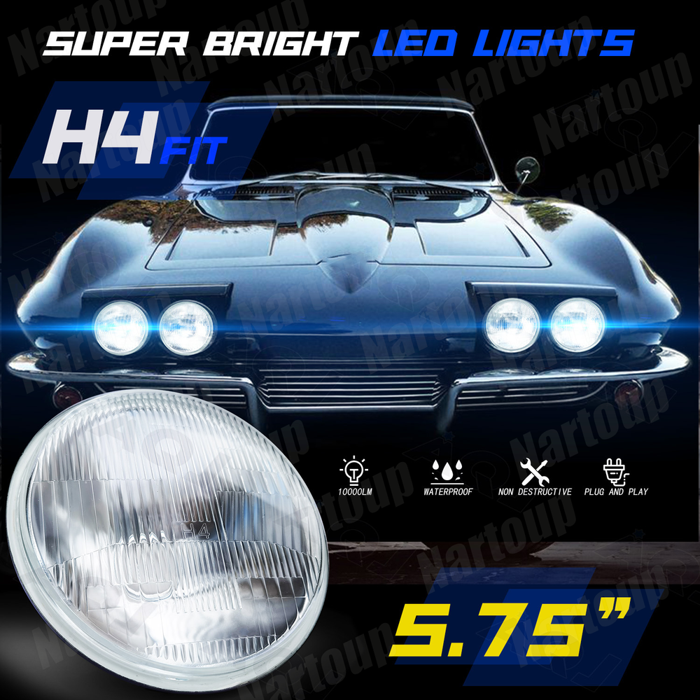 For Pontiac Catalina GTO Grand Prix 4Pcs 5.75" Led Headlights Chrome Hi/Lo Beam