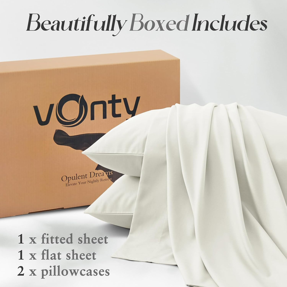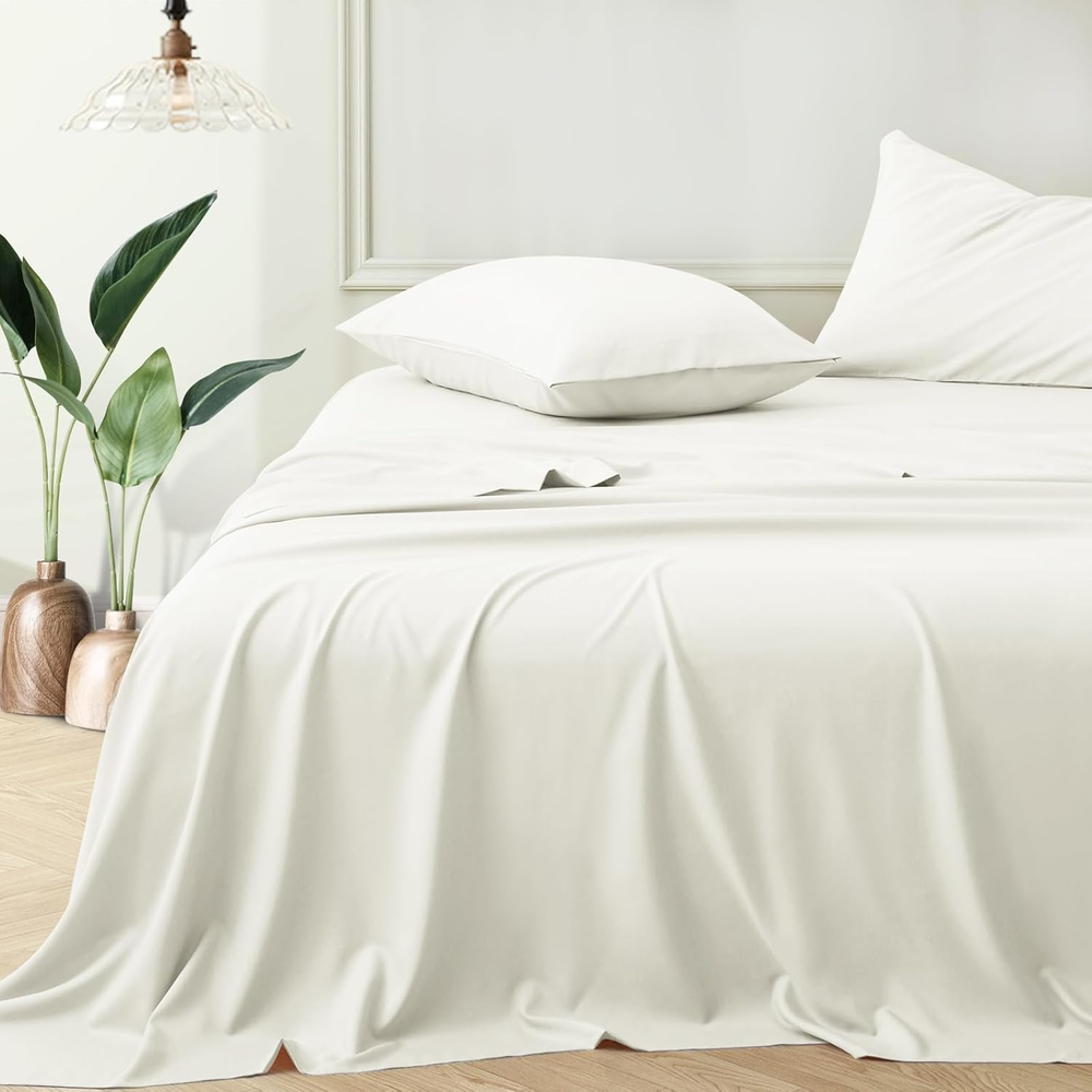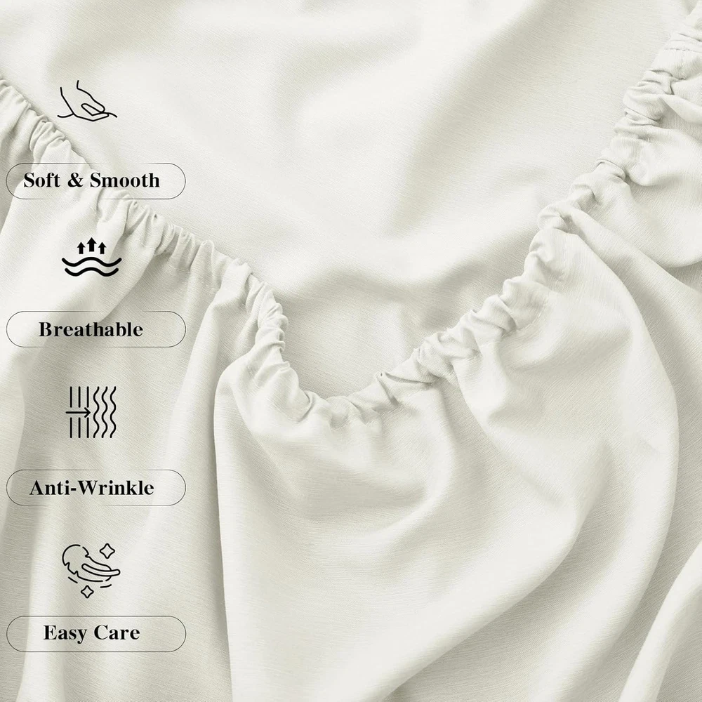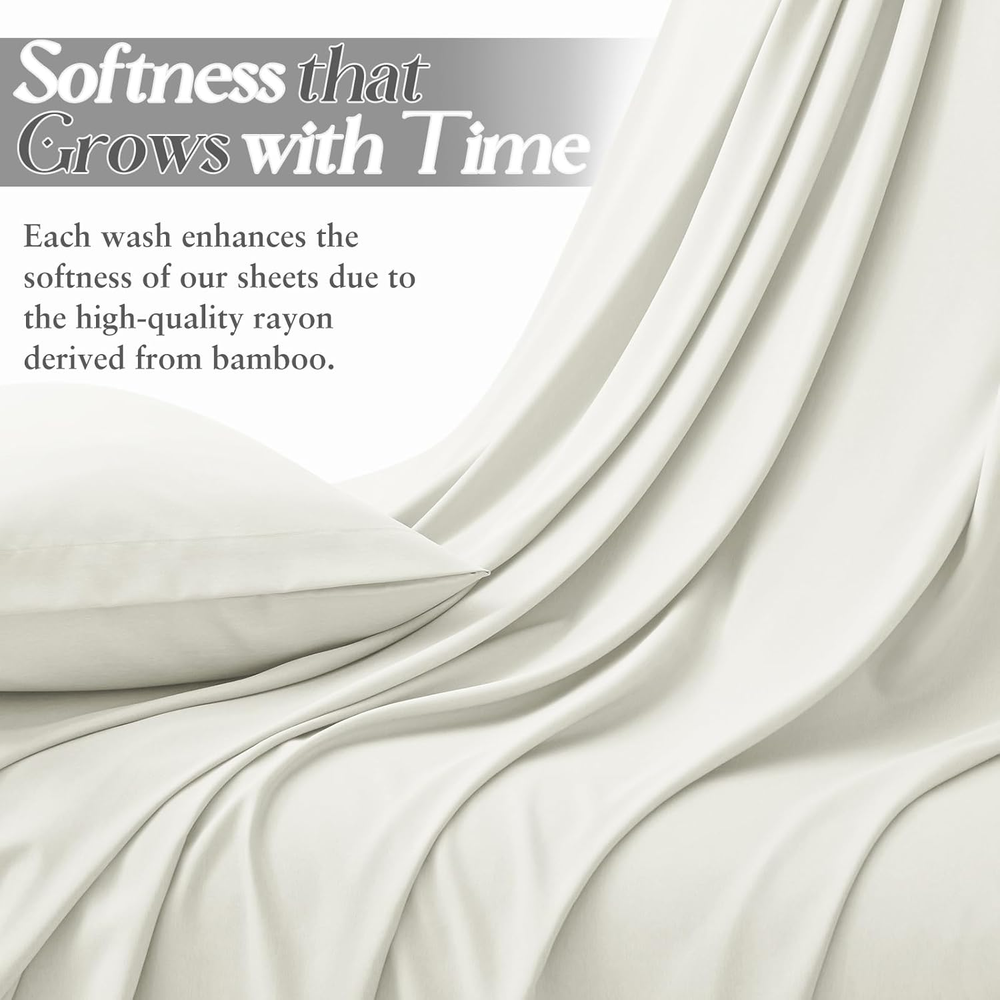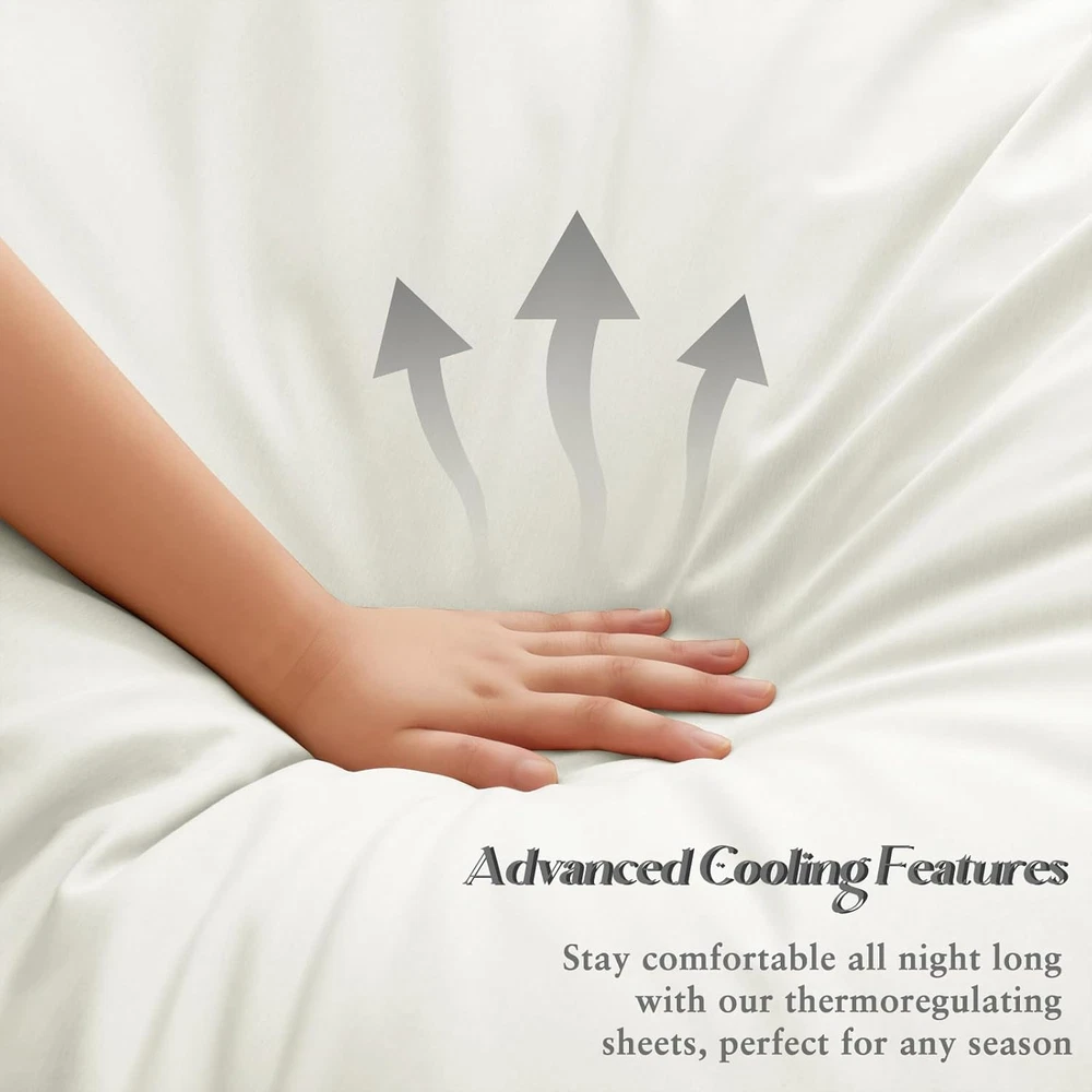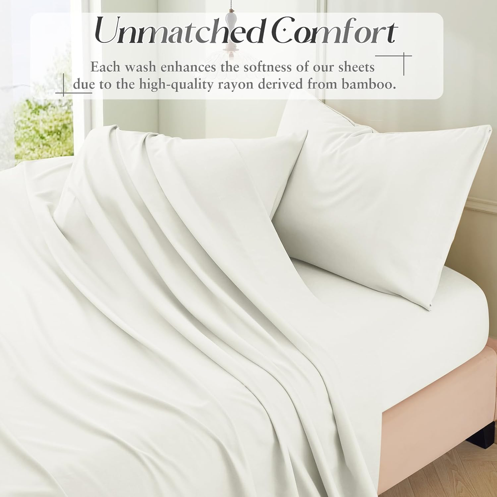 Standard of Distinction: Rayon derived from bamboo fibers(70%). Our king size bed sheets have been manufactured to ensure a high standard of quality. Not only are these sheets soft and luxurious, but they are also extremely durable and safe for both adults and children Unmatched Durability and Comfort: Our king sheets provide an exceptional balance of durability and softness. The high-density weave contributes to the longevity of the bedding set, while the cooling finish offers a silky-smooth touch that is gentle on the skin, making it ideal for crowds. Advanced Cooling Features: Stay comfortable all night long with our thermoregulating sheets, perfect for any season. The unique moisture-wicking properties of the rayon derived from bamboo fibers keep you cool and dry by drawing sweat away from the body, making these king sheet set an excellent choice for hot sleepers. A Night of Tranquil Sleep: Imagine ending your day in the embrace of our ultra-soft cooling sheets. As you slip into bed, the cool, silky fabric caresses your skin, transporting you to a state of relaxation and peace. Our king size sheets help regulate your body temperature, ensuring that you enjoy a deep, uninterrupted sleep, waking up refreshed and energized. Softness that Grows with Time: Each wash enhances the softness of our sheets due to the high-quality rayon derived from bamboo. Experience a new level of comfort with sheets that grow softer and more inviting with every laundry cycle, promising a luxurious bedtime experience night after night. Luxury Silky Satin Pillowcase for U -- Good sewing stitch and exquisite workmanship reduce loose thread. Rayon derived from bamboo sheets are one of life's simple pleasures Secret to Beautiful Hair & Health Skin -- Rayon derived from bamboo sheets your hair safe from harm and snagging -- luxurious bed sheets also can protect your skin against the facial sleep lines that could become deep wrinkles. -- There is a fabulous selection of colors. You sure can find a sheets that complements your decor. The sheets is a bed product which you can use in all seasons Product Specification Product Name: Rayon Derived from Bamboo Sheets Material: 70% Rayon derived from bamboo & 30% Polyester Color: White, Grey, Green, Taupe, Black, Beige, Blue. Size: Twin size sheets-- 1 x Flat Sheet (63"x93"), 1 x Fitted Sheet (39"x75"+15"), 1 x Pillowcase (20"x30") Full size Sheets-- 1 x Flat Sheet (81"x92"), 1 x Fitted Sheet (54"x75"+15"), 2 x Pillowcases (20"x30") Queen size Sheets -- 1 x Flat Sheet (90"x102"), 1 x Fitted Sheet (60"x80"+15"), 2 x Pillowcases (20"x30") King size Sheets -- 1 x Flat sheet (108"x102"), 1 x Fitted sheet (78"x80"+15"), 2 x Pillowcases (20"x40")