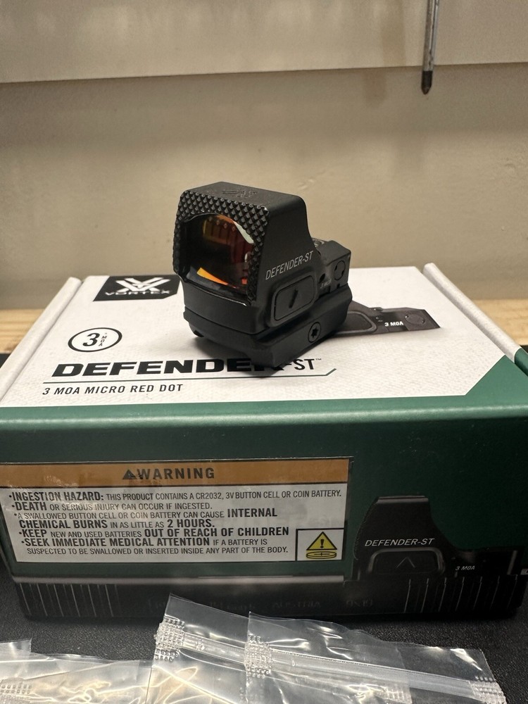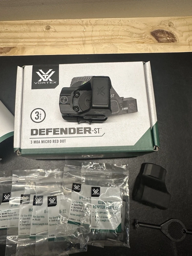 Vortex Defender ST red Dot 3MOA Only took out box to test function. Please view images for condition! Comes with everything in box!