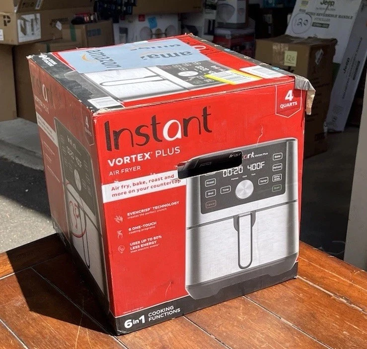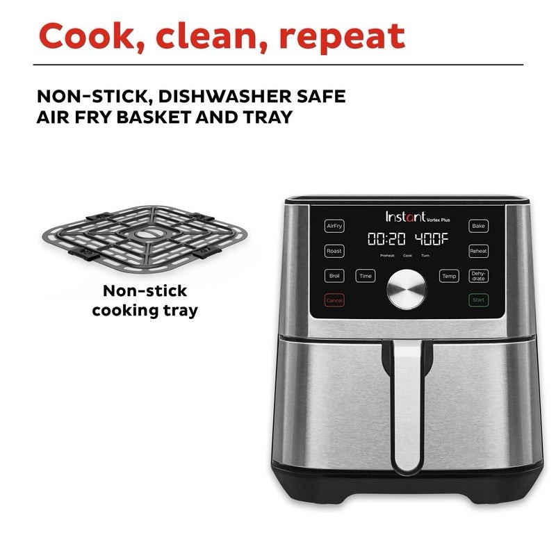 Assembly Required: No Voltage: 110 V Model: Air Fryer Max Temperature Setting: 400 Degrees Fahrenheit Number Of Pieces: 1 Wattage: 1600 Watts Special Feature: Programmable Output Wattage: 1600 Watts Upc: 810028584327 Item Weight: 9 lbs Care Instructions: Dishwasher Safe Material: Stainless Steel Power: 1600 W Maximum Temperature: 400°F Minimum Temperature: 95°F Capacity: 4 Control Method: Touch Brand: Instant Pot Min Temperature Setting: 95 Degrees Fahrenheit Components Included: Unit, 4qt Controller Type: App Features: Programmable, Adjustable Temperature, Easy Clean, Easy to Use Display, Fast Preheating, One-Touch Smart Programs, Overheat Protection, Touchscreen Item Depth: 10.2 in Batteries Required: No Inner Material: Stainless Steel Is Dishwasher Safe: Yes Has Nonstick Coating: Yes Power Source: Electric Number of Settings/Programs: Custom Program Options Product Dimensions: 10.2"d X 13.03"w X 11.02"h Type: Air Fryer Included Components: Instant Vortex Plus 6-in-1 Basket Air Fryer, 4qt Color: Stainless