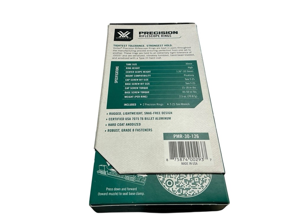 The Vortex Precision Matched PMR-30-126 Rifle Scope Rings are high-quality scope mounts specifically designed for rifles. Made from durable T6 billet aluminum, these rings provide a secure and stable attachment for your scope. The Picatinny mounting system ensures easy installation and precise alignment, making them ideal for shooting sports and hunting activities. With the Vortex brand known for their precision scopes, these rings are a reliable and essential accessory for any rifle enthusiast. Please ask any questions before purchasing. packaging may have light wear from storage