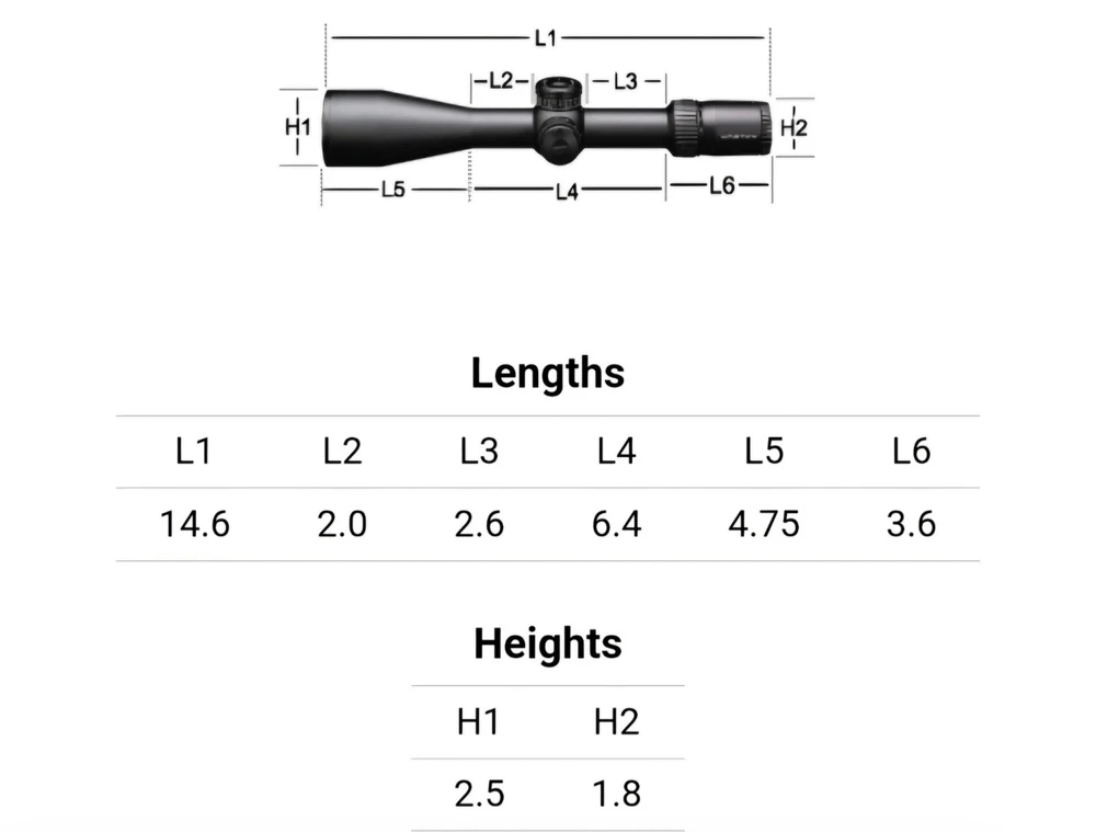 Item Weight: 30.4oz For Gun Type: Rifle Mounting: Quick Detach, Picatinny Item Height: 2.5" Sport/Activity: Shooting Reticle Color: Red Objective Lens Diameter: 56 mm Tube Diameter: 34 mm Country/Region of Manufacture: China Item Length: 14.6" Compatible Battery Sizes: CR2032 Linear Field of View: 5.2' @ 100yrds @25x Focal Plane: First gtin13: 0843829109123 Features: Illuminated, With Lens Cover, Fogproof, Waterproof Power Source: 2032 Battery Type: Rifle Scope Reticle Type: Illuminated, MOA UPC: 0843829109123 Maximum Magnification: 25x Item Width: 2.5" Lens Coating: Fully Multicoated Color: Black Material: Aluminum Alloy Manufacturer Warranty: Lifetime MPN: SE52503 Brand: Vortex Model: se-52503 Mounting Location: Rail