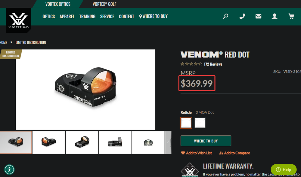 Vortex Venom 3 MOA Red Dot Sight Black VMD-3103 Reflex Optic