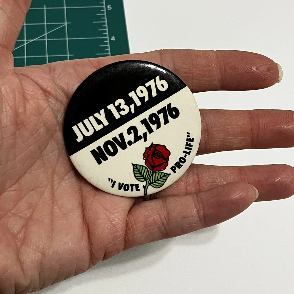 Vote Pro-Life Button Pin Red Rose 1976 Black White Badge Souvenir Vintage This pin came from a lifelong collection. It is in good gently used condition, totally functional with no major flaws, just condition that corresponds with its age. Please examine the photos carefully for details of wear and measurements. We are always happy to combine shipping whenever possible and accept returns for any reason. Cheers!