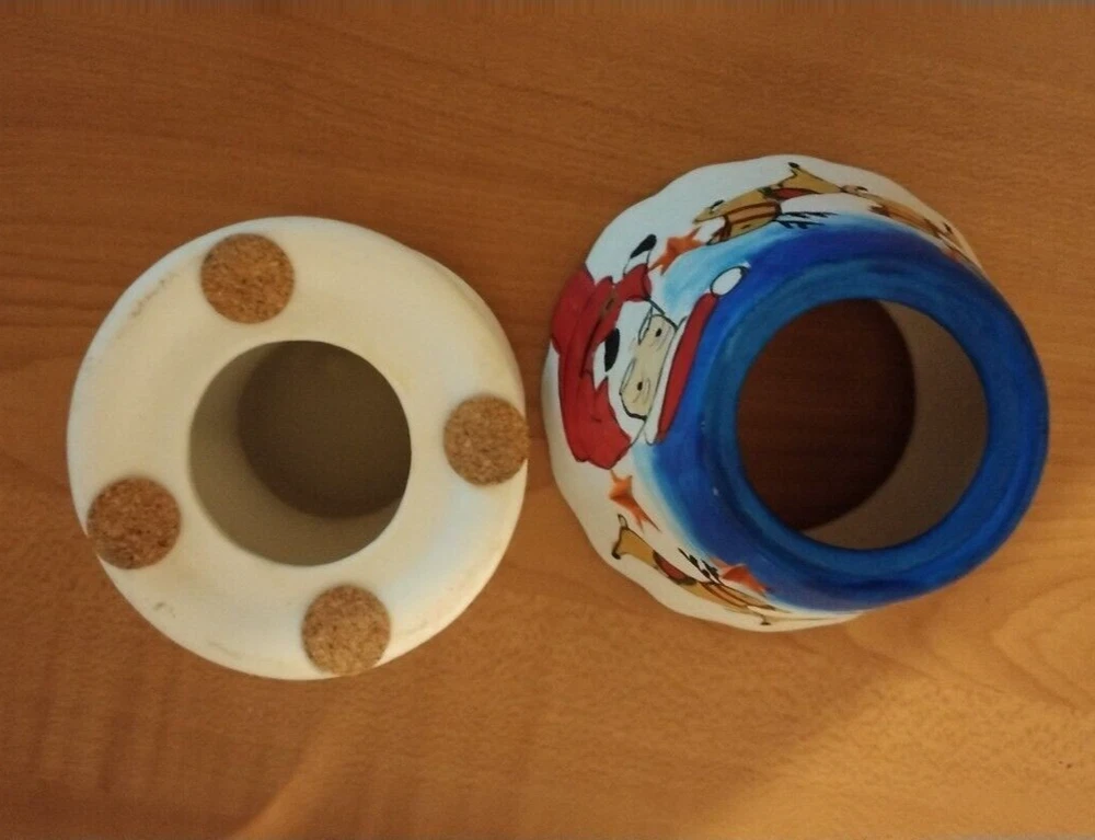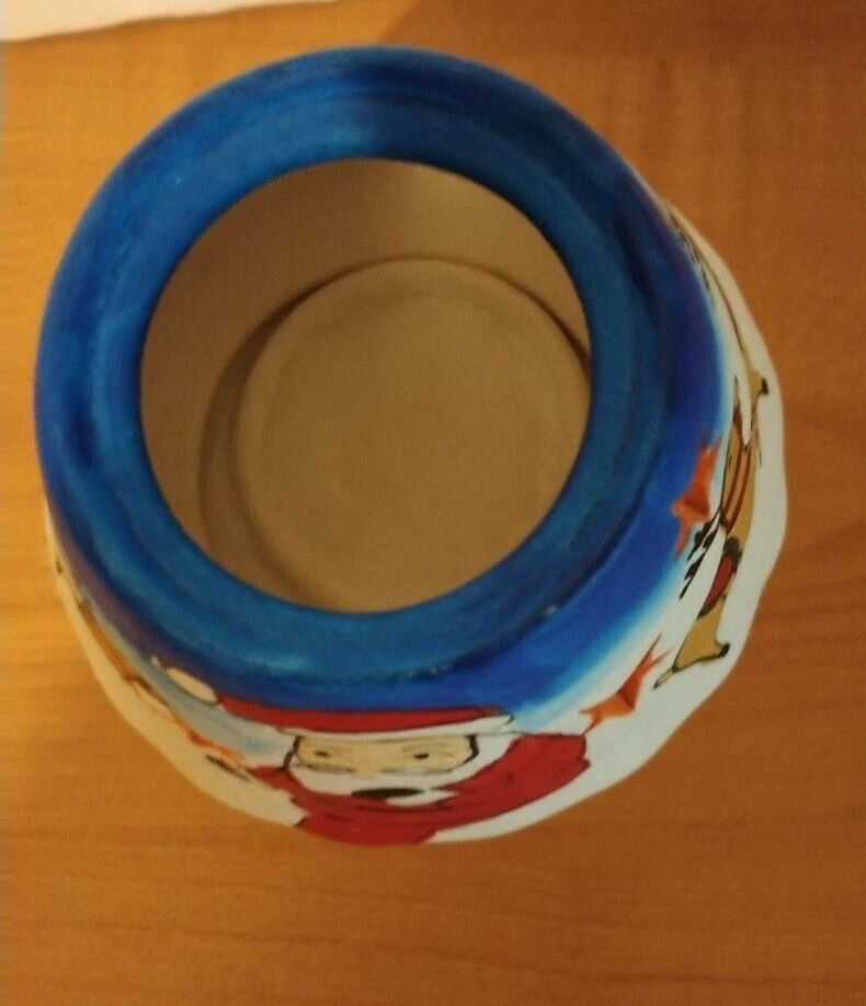 Santa & Reindeers Votive Candle Holder Great Condition 2 Piece 5.75" Tall Approx. Clay Bisque Matte Finish Star Cut Outs On Top Use With Led or Wax Votive Candles *Not Included Really Cute As Seen In Photos From A Smoke Free Home